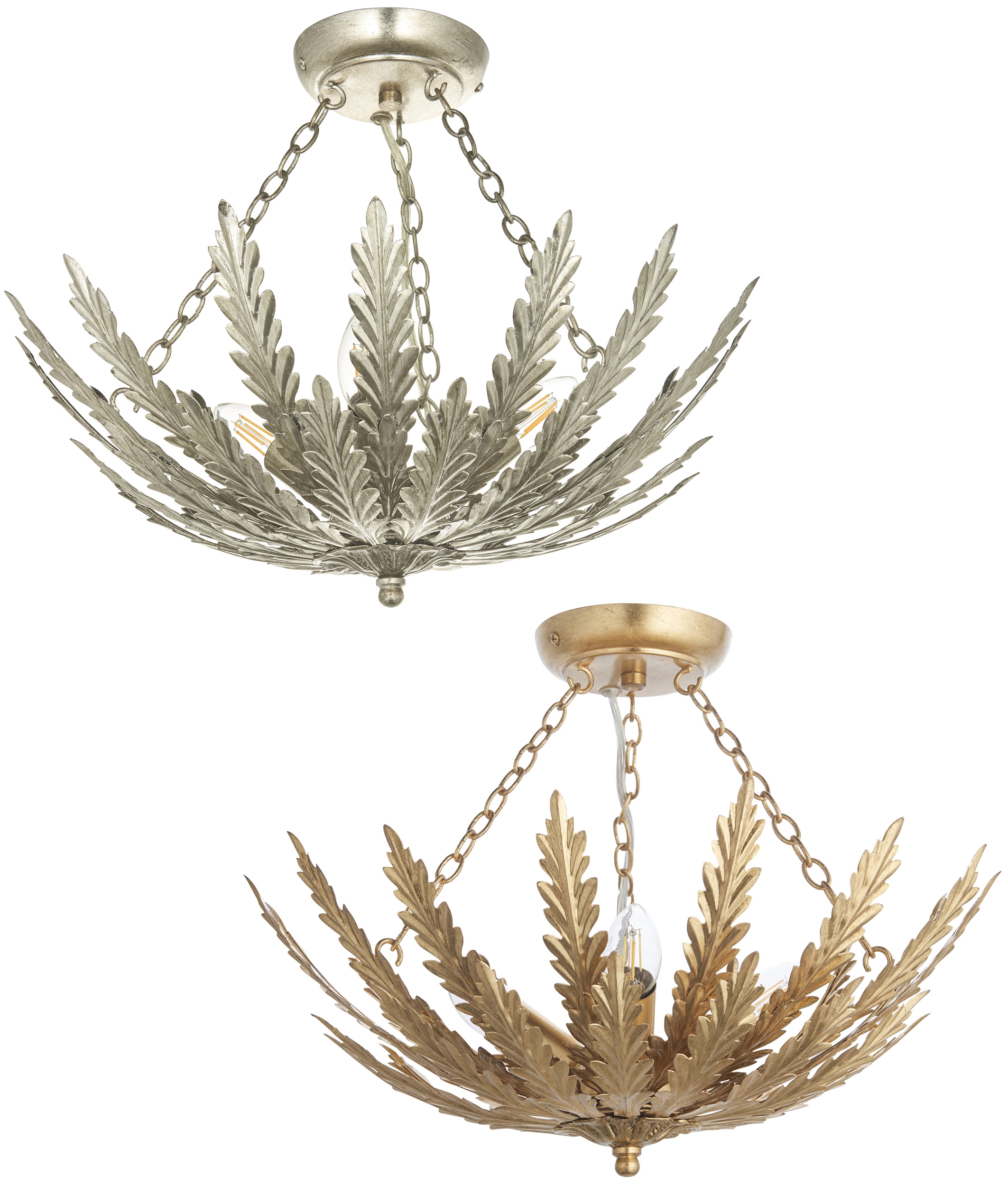 Opulent Gold Painted Floral Semi-Flush Ceiling Light