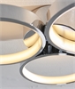 £166.00 inc VATAn architectural designed, semi-flush ceiling light with a geometric, circular design in a chrome finish. The inner section of the triple hoops each have a 10 watt, integrated, LED strip that loops around the inside of each ring to create glare free illumination.