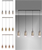 The shades are suspended from a sleek black ceiling bar via adjustable black cords, allowing for customised hanging heights to suit your space. The metallic lamp holders are available in four luxurious finishes: brass, polished nickel, black chrome, or copper, providing flexibility to match a variety of interior styles, from industrial to modern chic.