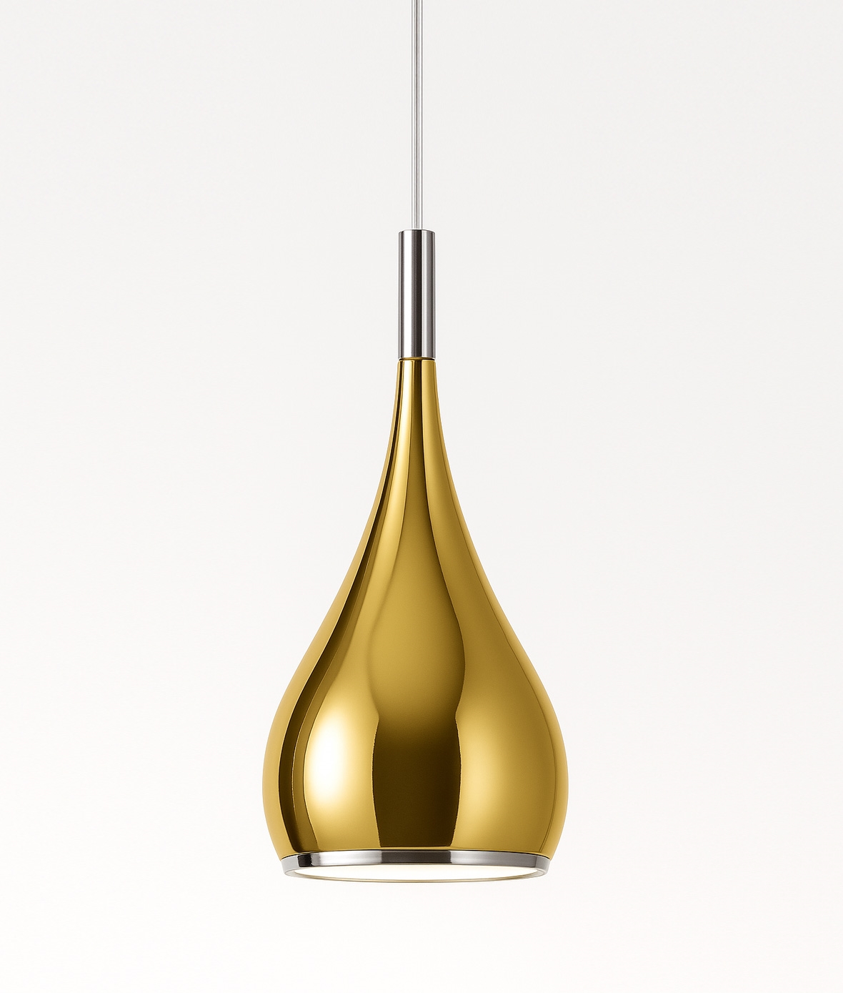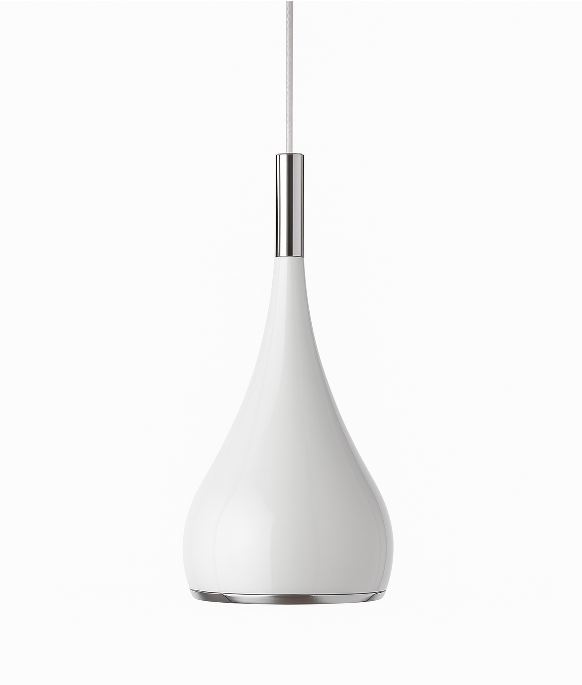 Featuring a chrome band at the base and matching detail at the top of the shade with a clear flex measuring 900mm - can be adjusted during installation.