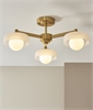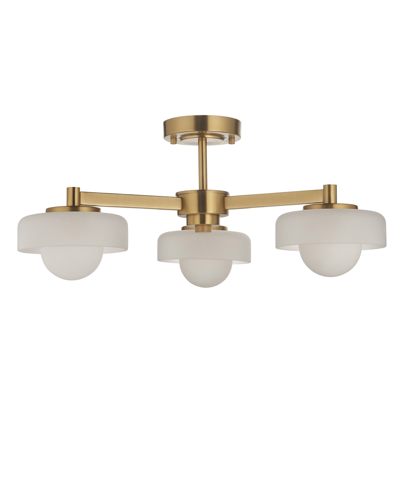 £195.70 inc VATThis three-arm semi-flush ceiling light features a brushed brass frame complemented by smooth opal glass shades, combining timeless style with modern functionality. Its compact profile makes it ideal for rooms with lower ceilings while maintaining a sense of elegance and balance.