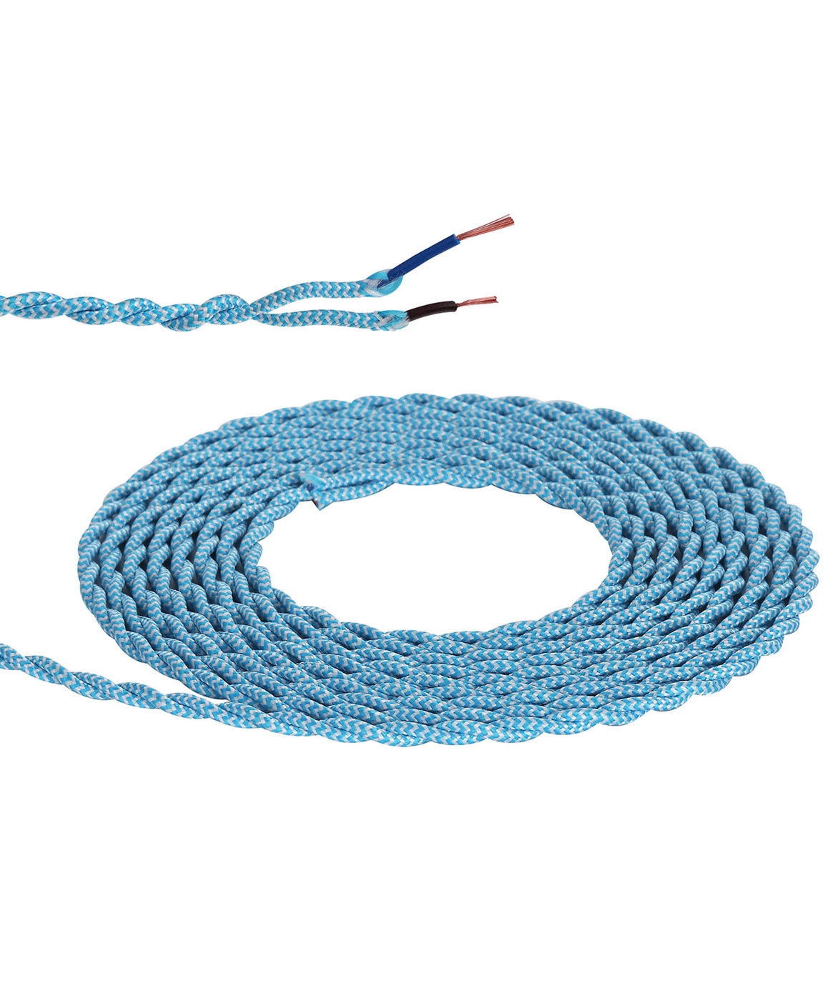 A blue and white 2-core electrical cable ideal for indoor lighting installations where appearance and discretion are important. The black braided cable is ideal for single or multiple light fittings .