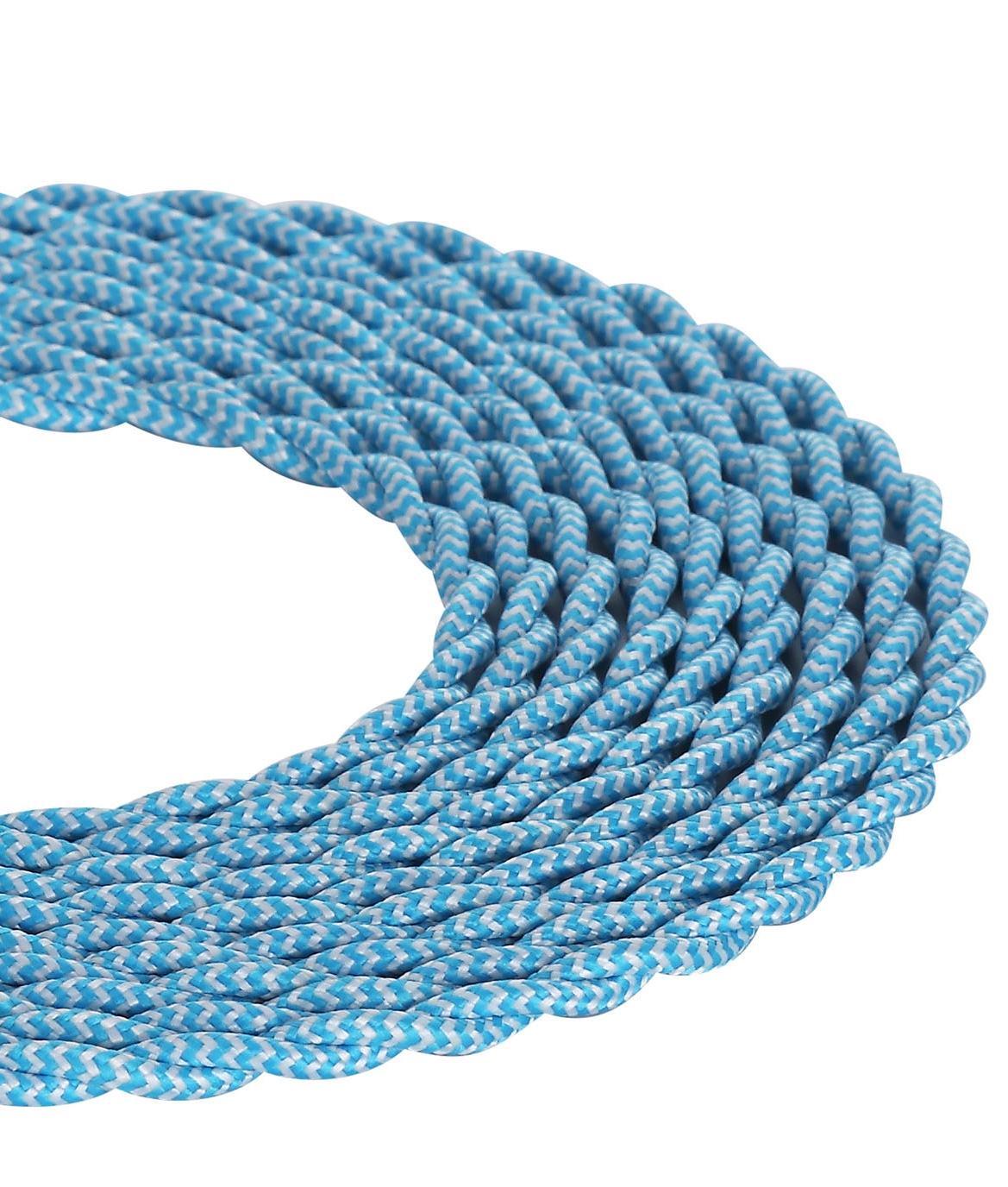 £5.00 inc VAT1 Metre Blue & White Wave Stripe Twisted & Braided 2-Core Electrical Cable – 0.75mm²