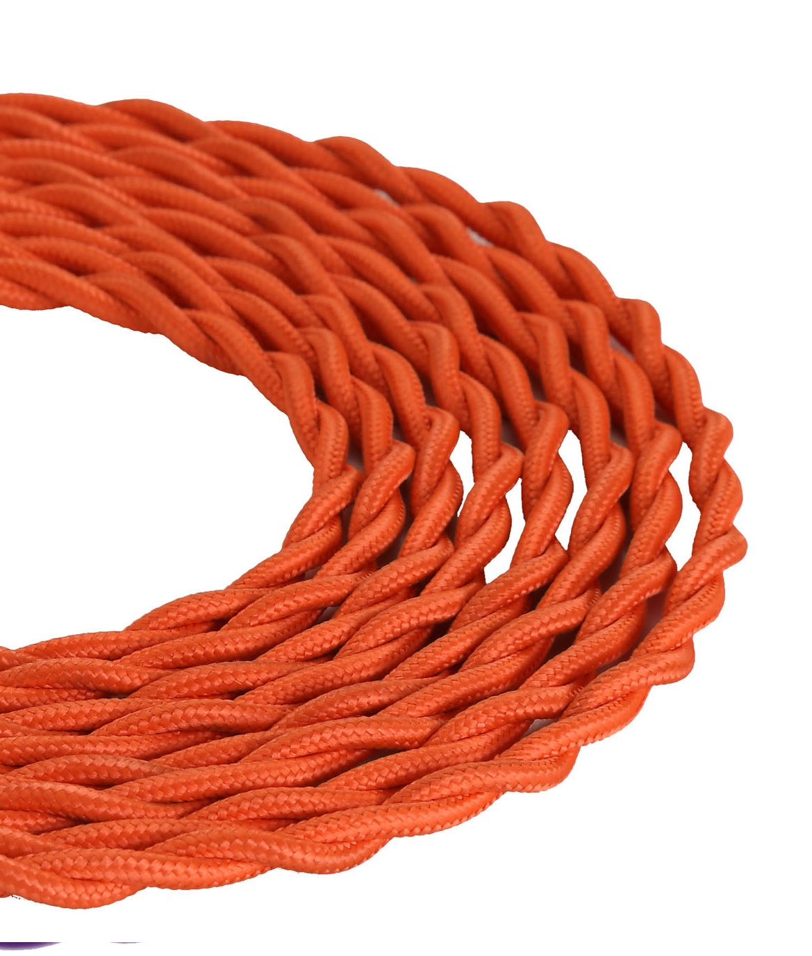 An orange 2-core electrical cable ideal for indoor lighting installations where appearance and discretion are important. The braided cable is ideal for single or multiple light fittings.