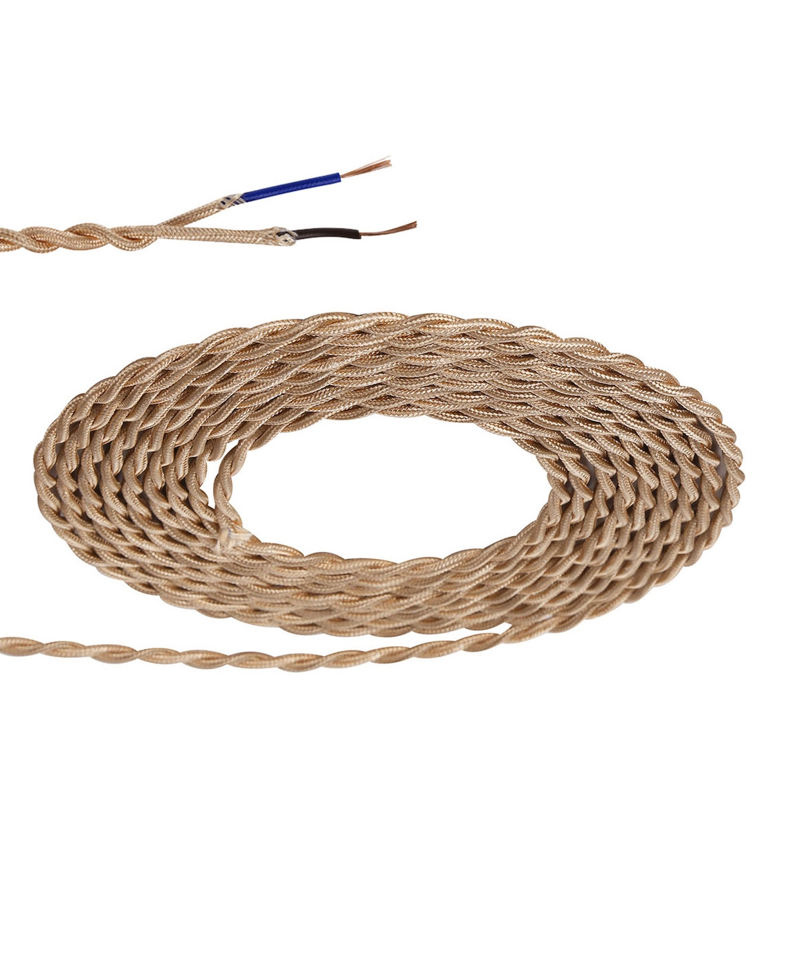 1m Pale Gold Braided Twisted 2-Core 0.75mm Electrical Cable