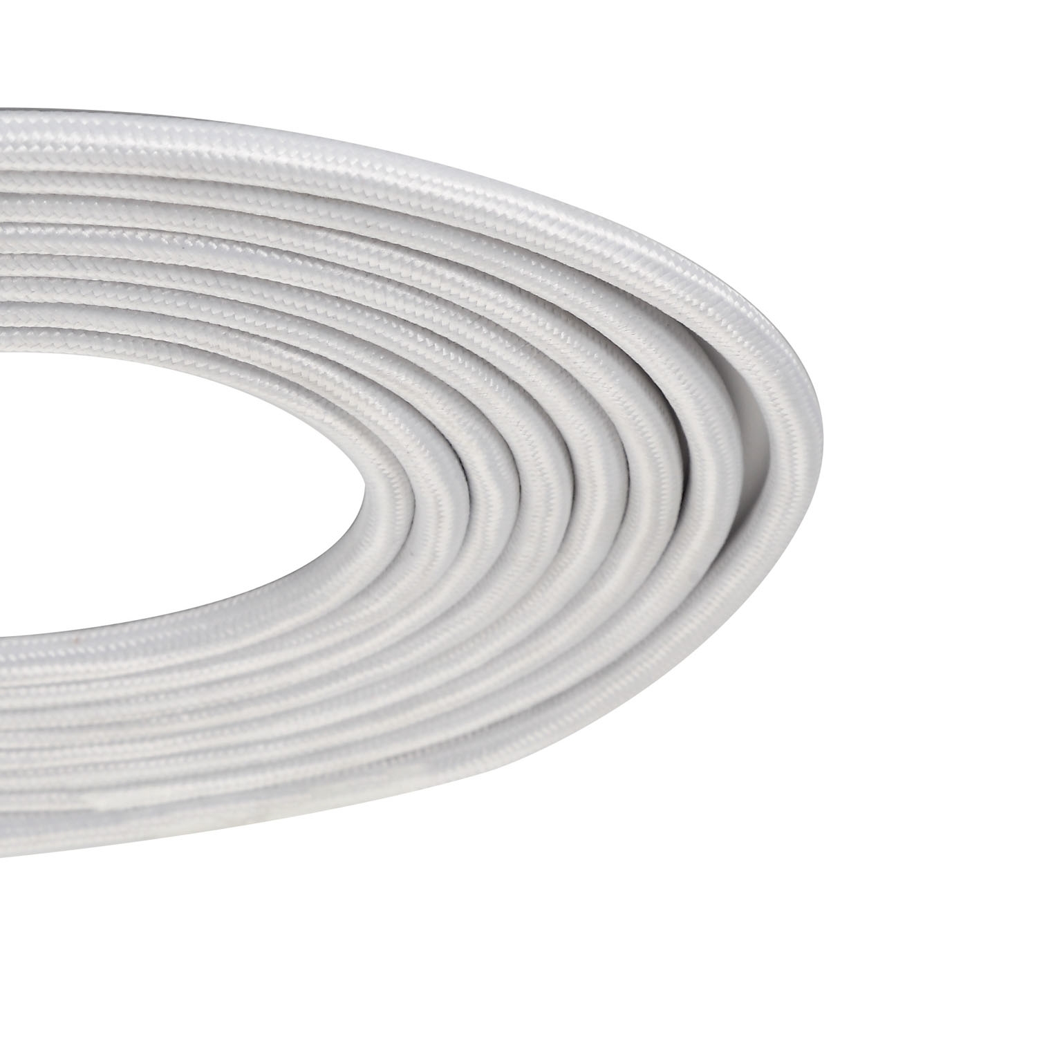 A white braided 2-core electrical cable ideal for indoor lighting installations where appearance and discretion are important.