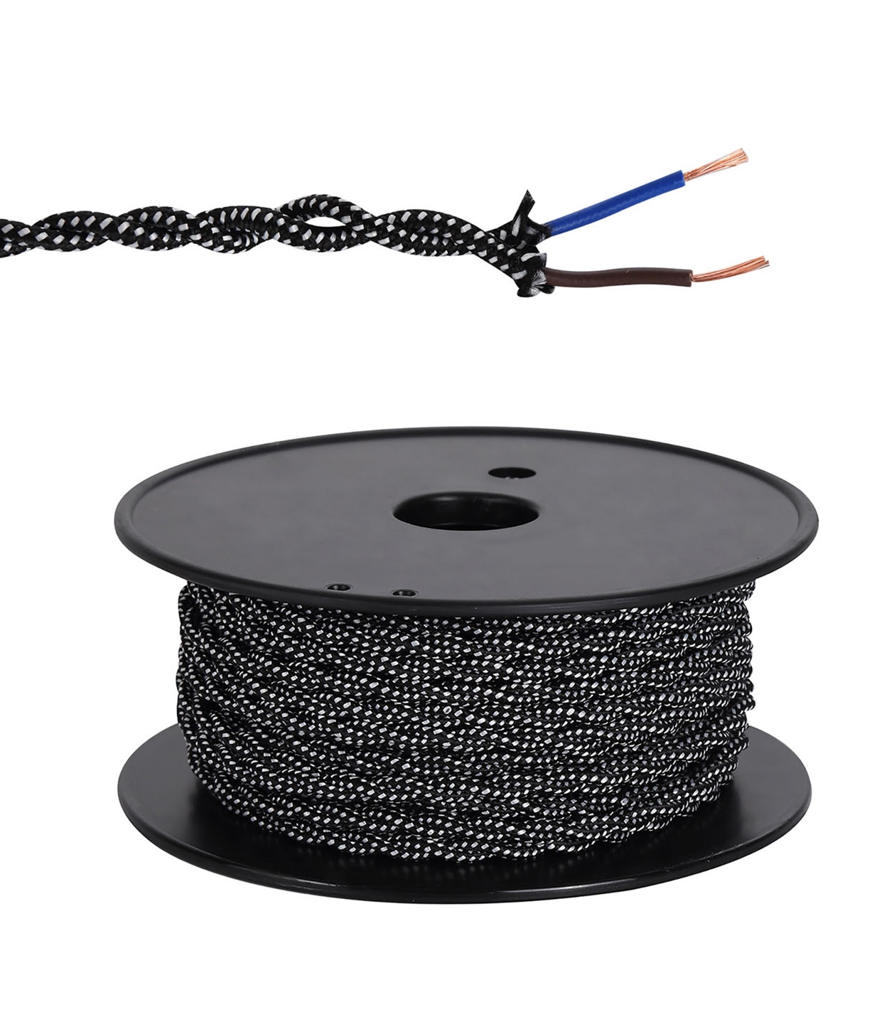 A selection of 2-core electrical cable available in black and white spot colour. Ideal for indoor lighting installations where appearance and discretion are important. The braided cable is ideal for single or multiple light fittings.