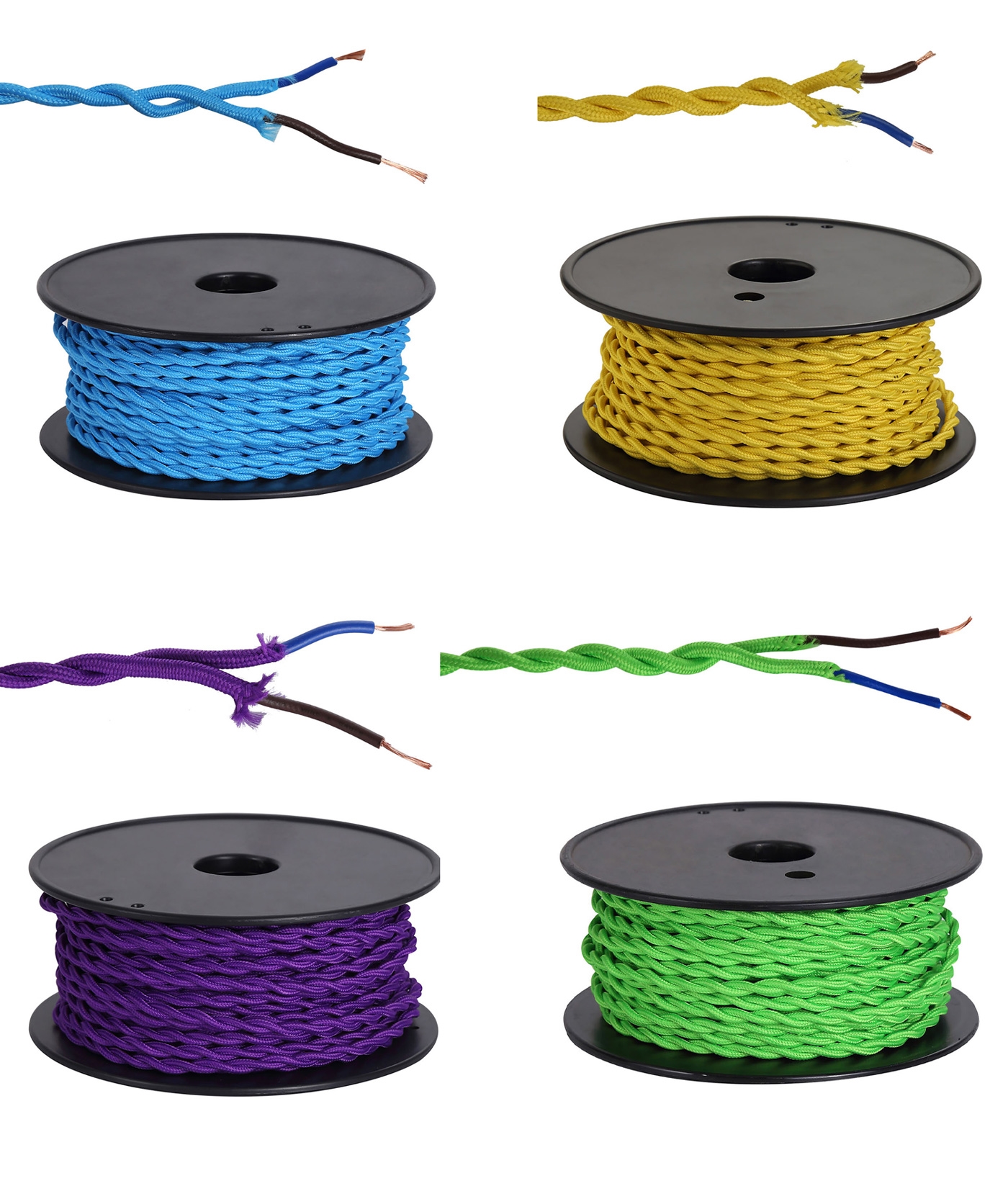 A selection of 2-core electrical cable available in blue, yellow, purple or light green colour. Ideal for indoor lighting installations where appearance and discretion are important. The braided cable is ideal for single or multiple light fittings.