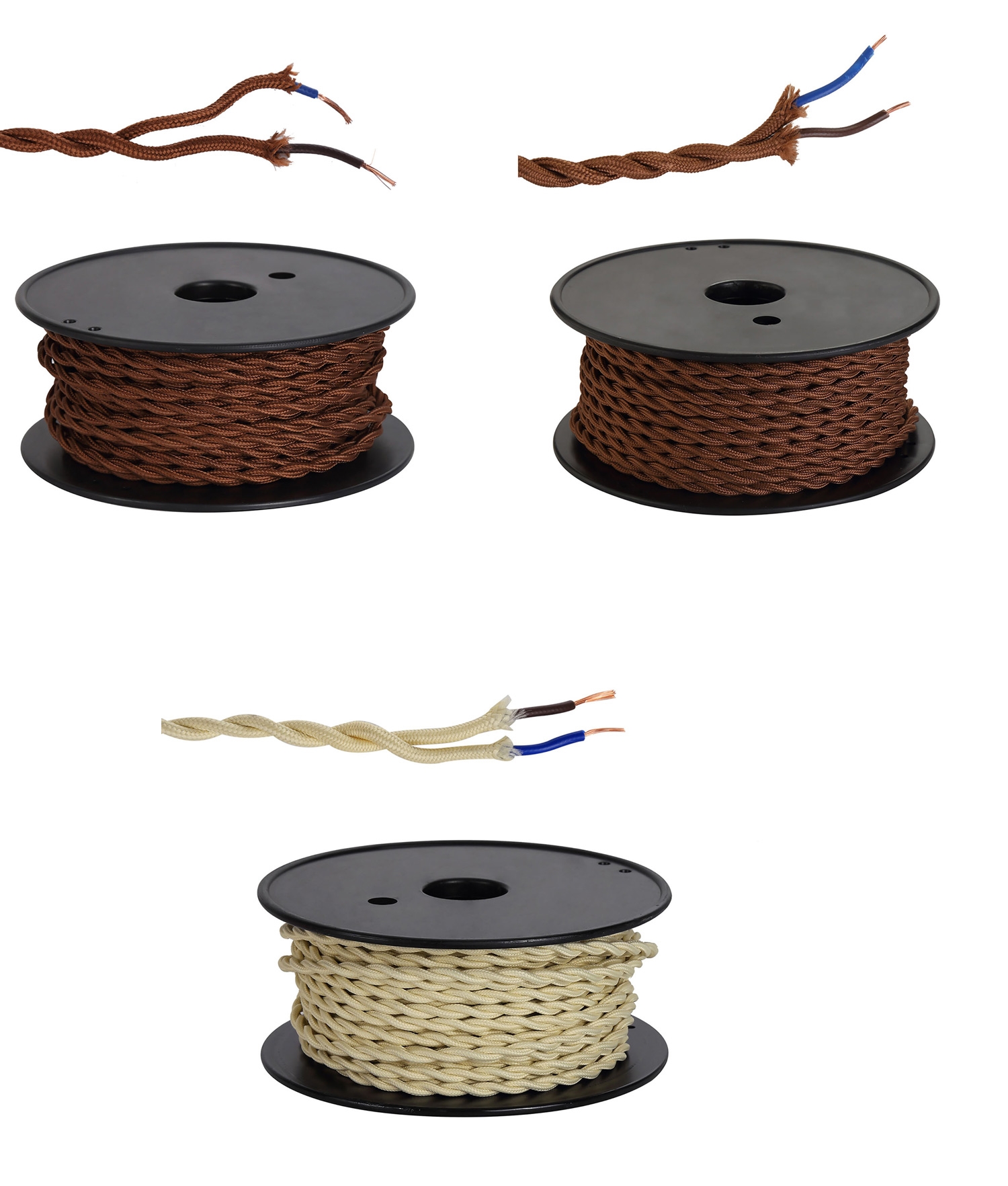 A selection of 2-core electrical cable available in dark brown, red brown or beige colour. Ideal for indoor lighting installations where appearance and discretion are important. The braided cable is ideal for single or multiple light fittings.