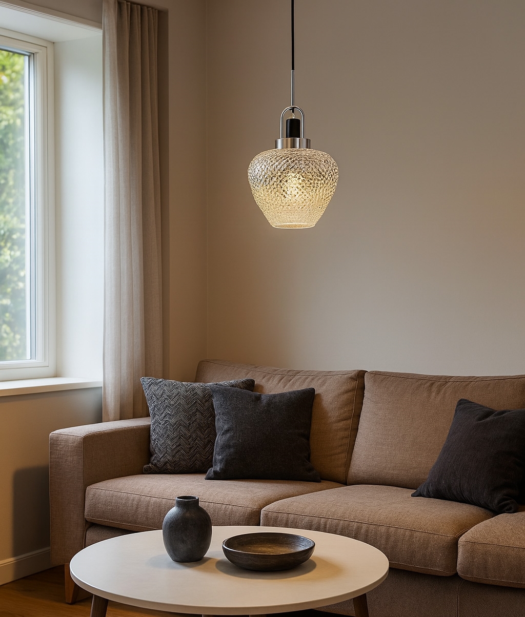 This pendant light is ideal for domestic and commercial spaces alike. It works particularly well above dining tables, kitchen islands, or in living rooms, where its design can be admired. It also provides ambient lighting with a touch of glamour, making it an excellent choice for residential homes, hotels, or restaurants.