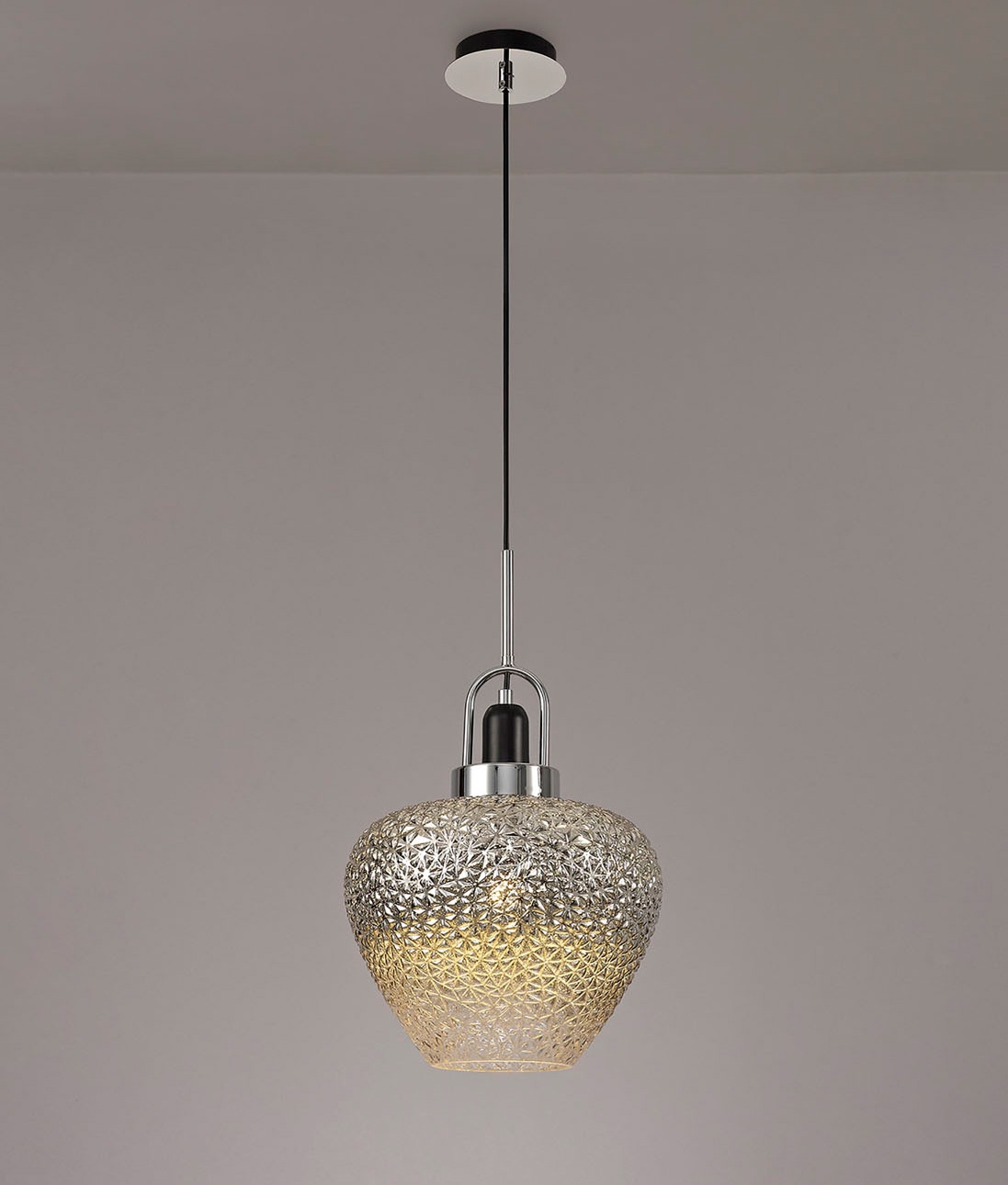 Ombre Effect Smoke Glass & Chrome Pendant Light