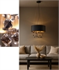 £59.95 inc VATThis black shade which measures 530mm has a black interior and is suspended from three tensile wires. Inside the shade are multiple strands of black glass which create a truly unusual and interesting light.