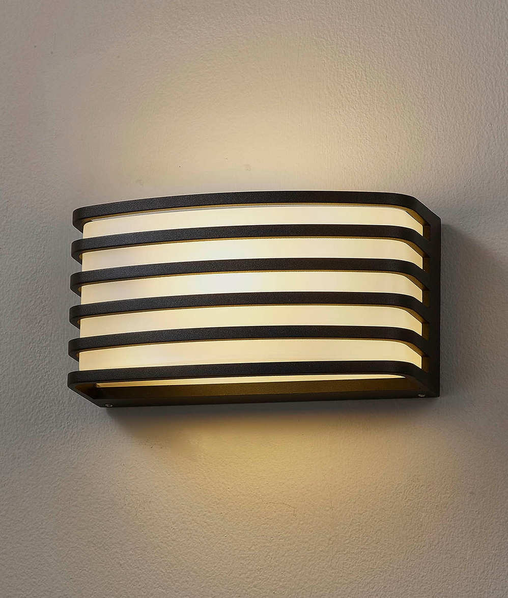 Available in Matt Black, Matt Brown and Anthracite finishes, the design is simple and functional, with horizontal slats that create a visually clean structure while helping to direct light outward and downward for effective coverage.