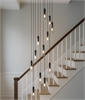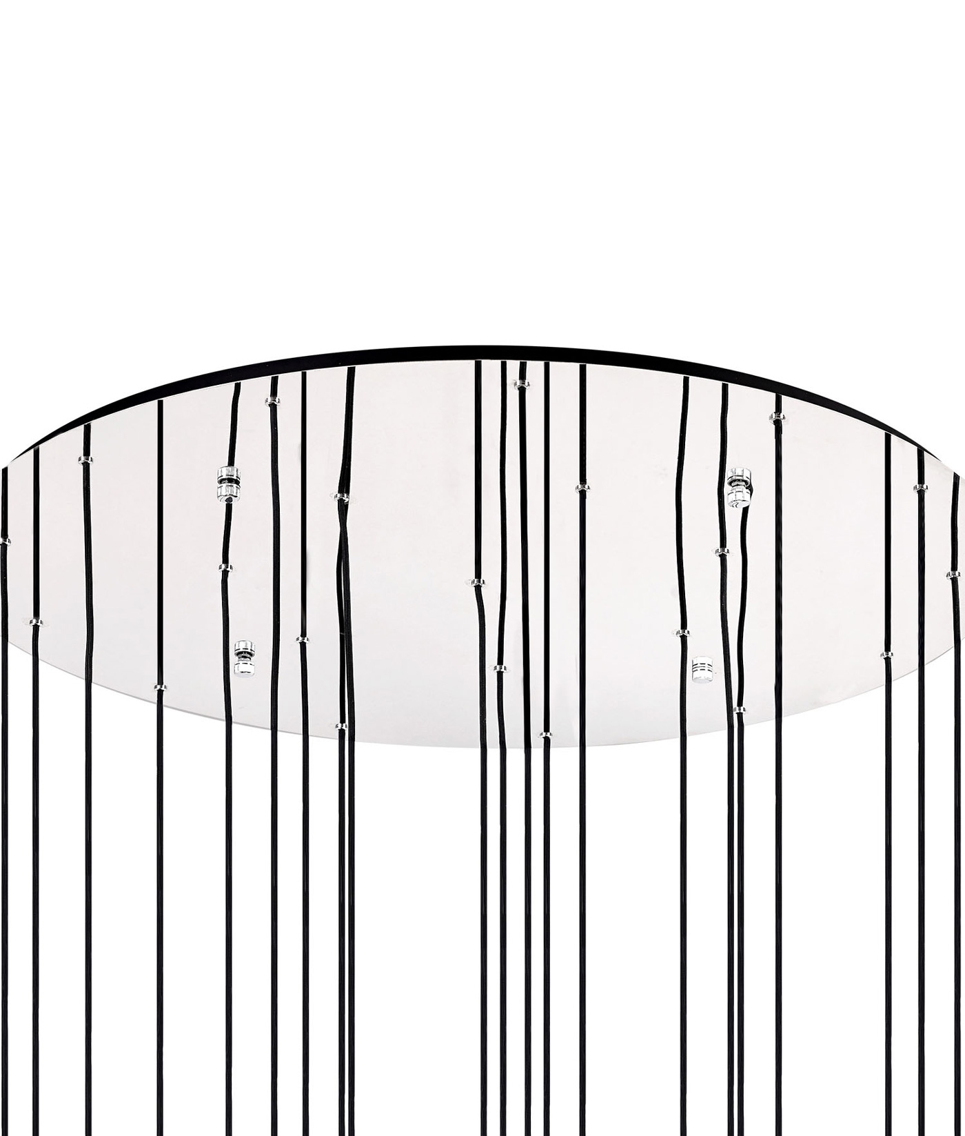 This extra-large pendant light features 21 glass cylinders, each with a 100mm diameter and 350mm height. The 1000mm diameter of the canopy provides a dramatic presence, perfect for open hotel spaces. The adjustable drop, ranging from 500mm to 5.46m, allows for flexibility in high-ceiling installations. Whether arranged in a spiral, tapered, or uniform configuration, the cascading effect adds a striking focal point to any space. When placed in areas with airflow, such as entrance halls or staircases, careful consideration is needed to avoid the pendants swinging into each other.