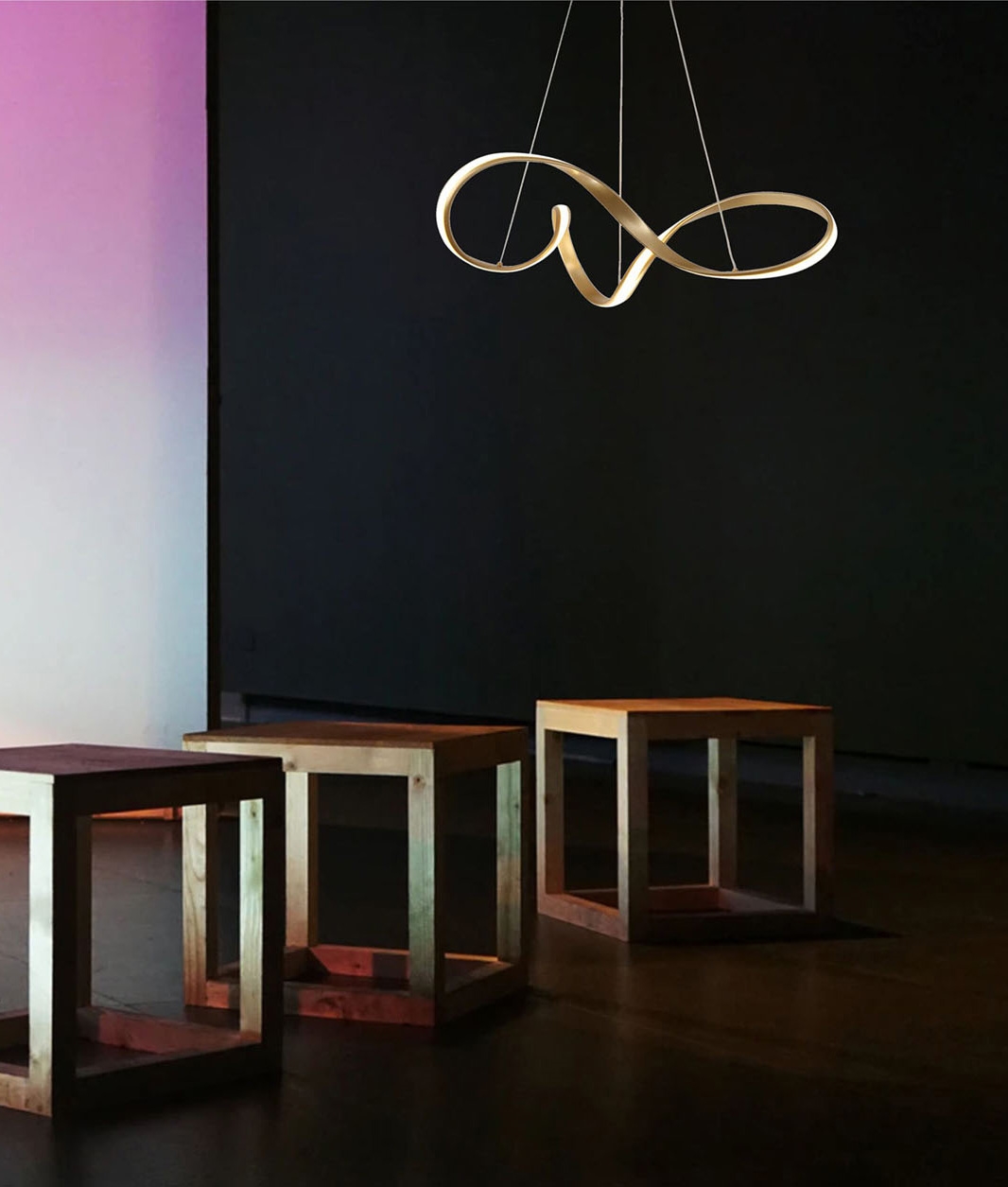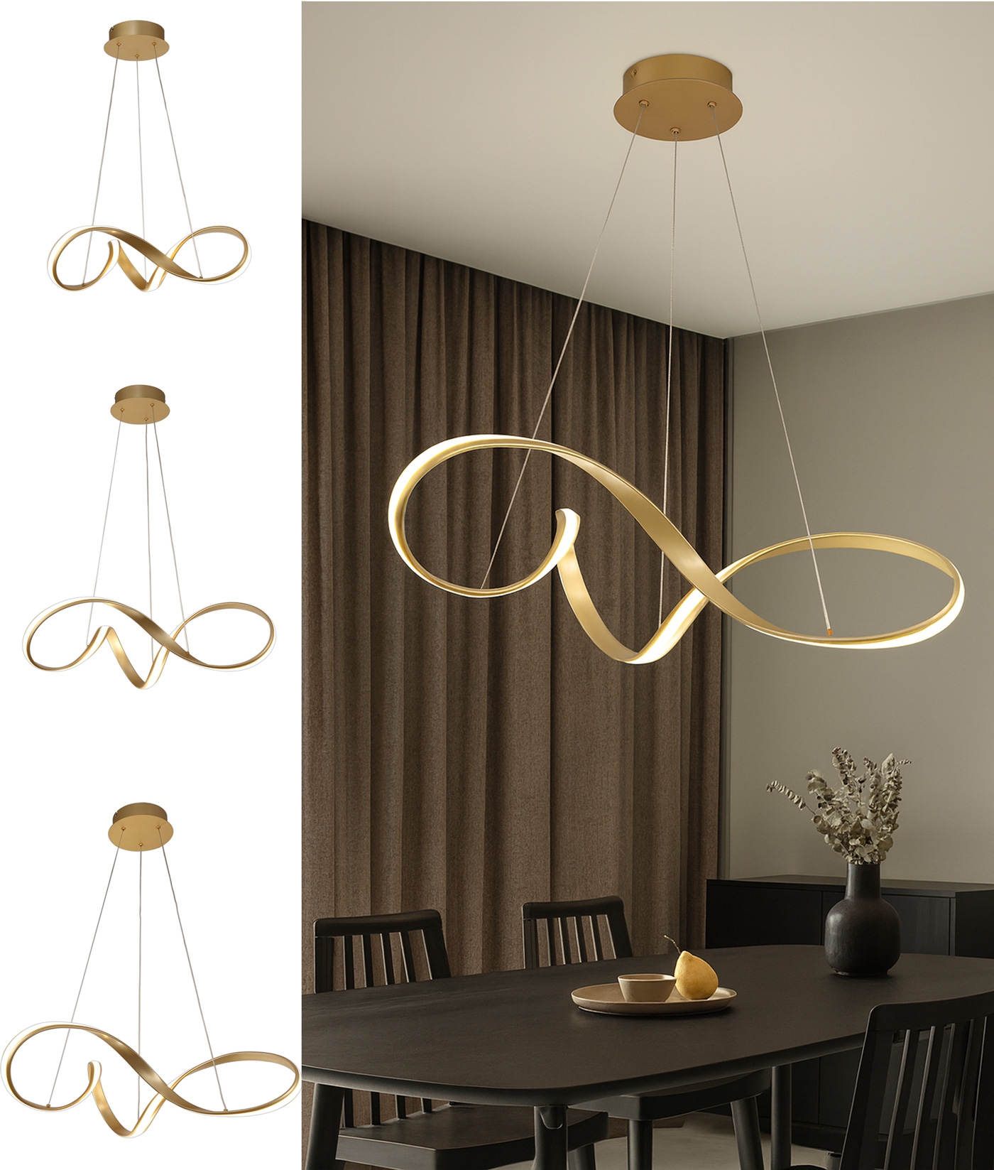 From £259.00 inc VATThe rhythmic twists and curls of this suspended light deliver a seamless flow of light. Despite the spiralled directionality of the integral LEDs the fittings as a whole emit an ambient glow of 3000K illumination. In order to offer a wider variety of LED options, it boasts a sand gold colour finish making this pendant range a rare must have entity within a market where modern LED lighting paired with traditional colours are scarce.