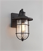 £110.00 inc VATThis wall lamp follows a vintage theme reminiscent of the classic lanterns used on sailing boats. A clear bell shaped glass, formed with small bubbles to replicate fine drops of water, safely houses an E27 lamp holder. The nautical nature of the gridline frame complements the glass feature whilst providing an added defence against outdoor elements. The black colour finish with gold trim also enhances the ranges durability.