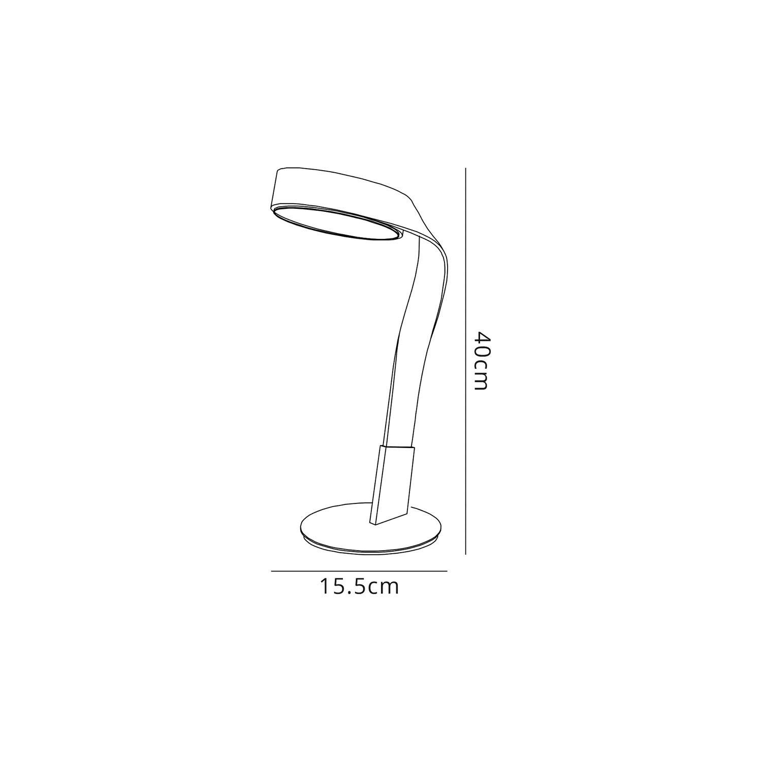 £104.00 inc VATChico presents silver framework manipulated to reflect lengths of ribbon which twist into a ring at the end. These rings encircle the round diffuser disk that houses the integral 3000K LEDs. The flat disk surface dispels the optimum amount of light possible to ensure there is no waste from the high wattage LEDs. A great table lamp for office or living space.