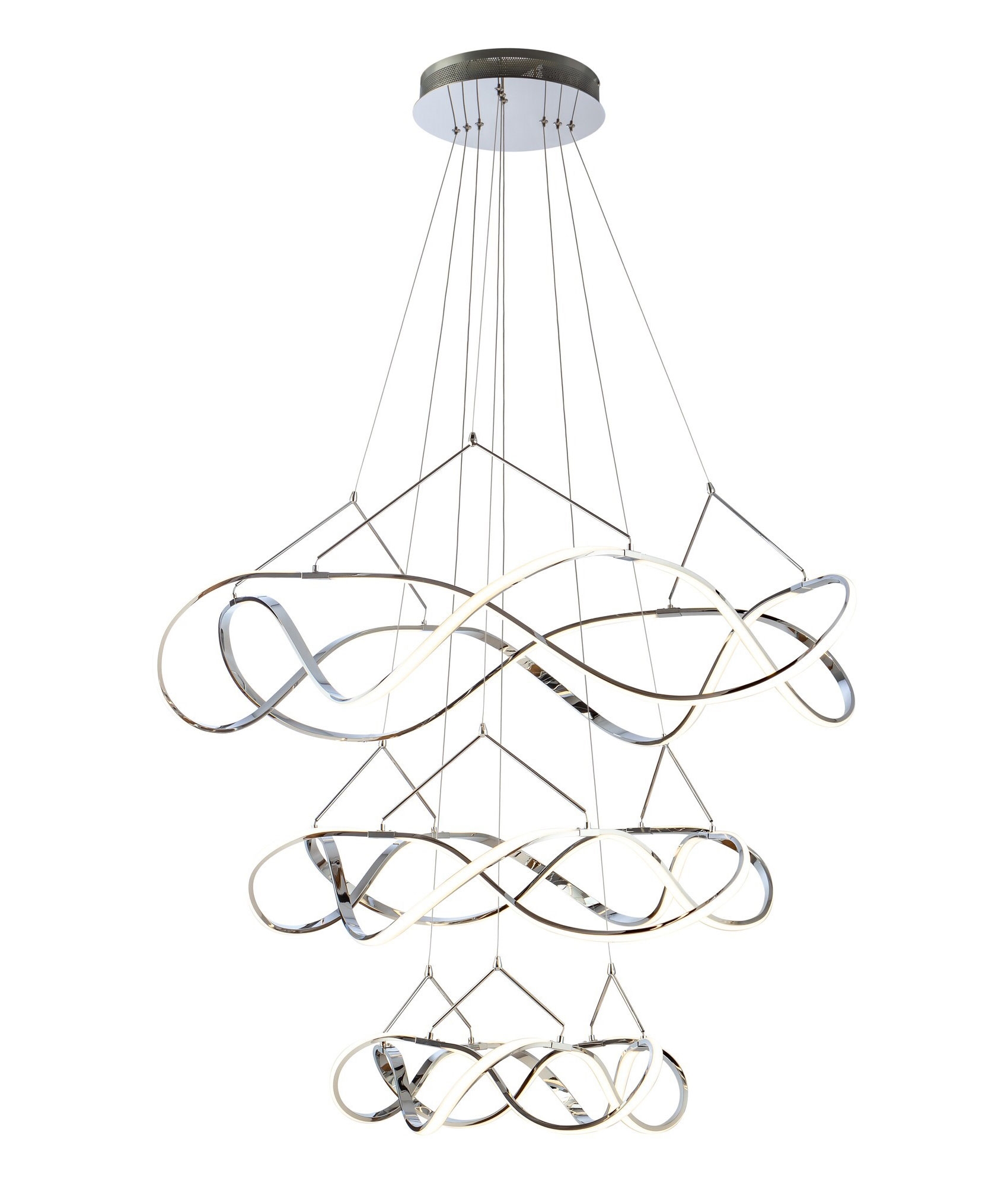 1100mm Chrome Three-Tier LED Pendant Light with TRIAC Dimming Chic Swirling Light Pendant