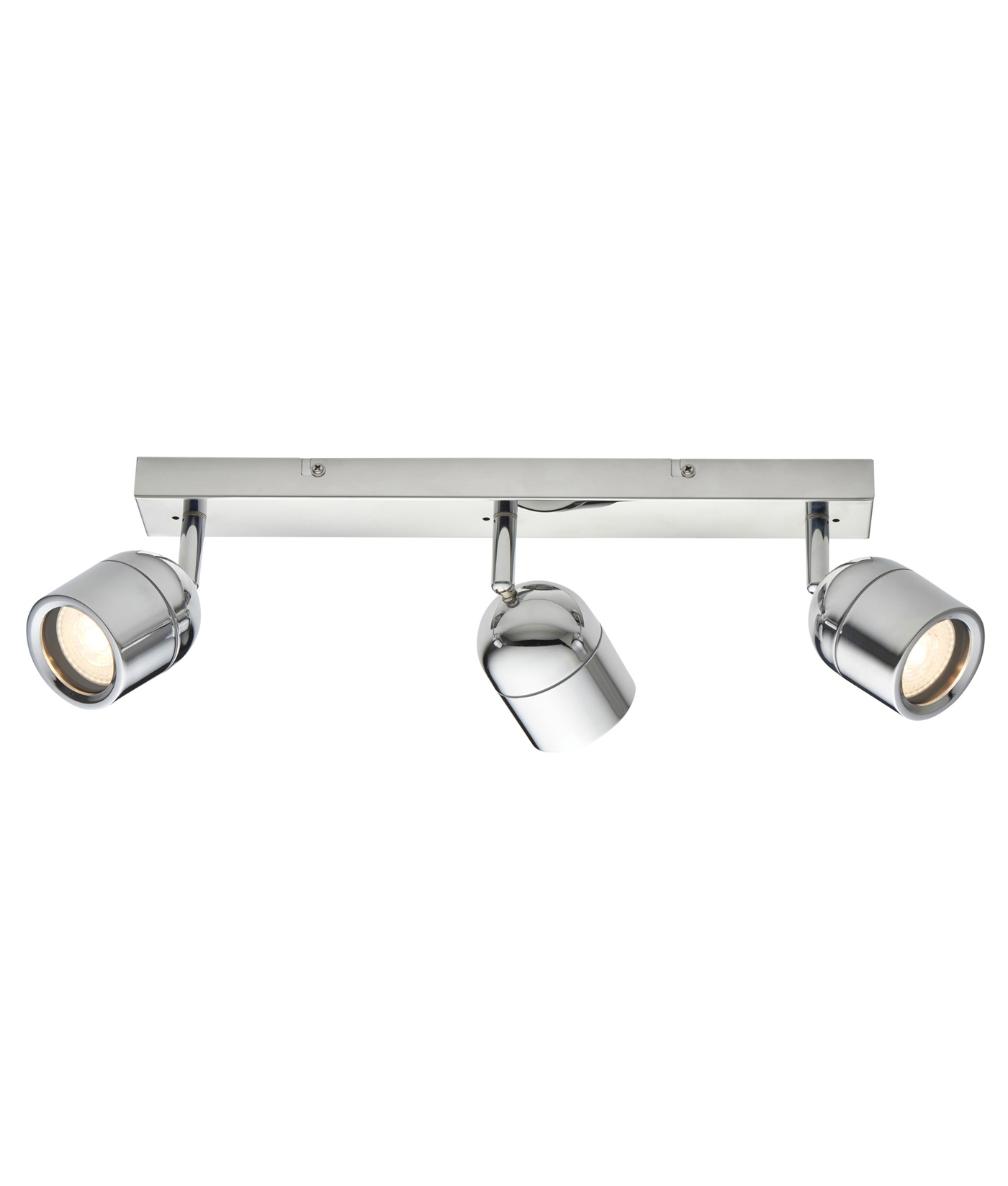 £72.00 inc VATThis three light chrome ceiling spotlight bar delivers clean, directional lighting with a polished contemporary finish. Each adjustable head allows you to focus light exactly where it is needed, ideal for task lighting in bathrooms, kitchens or utility areas.