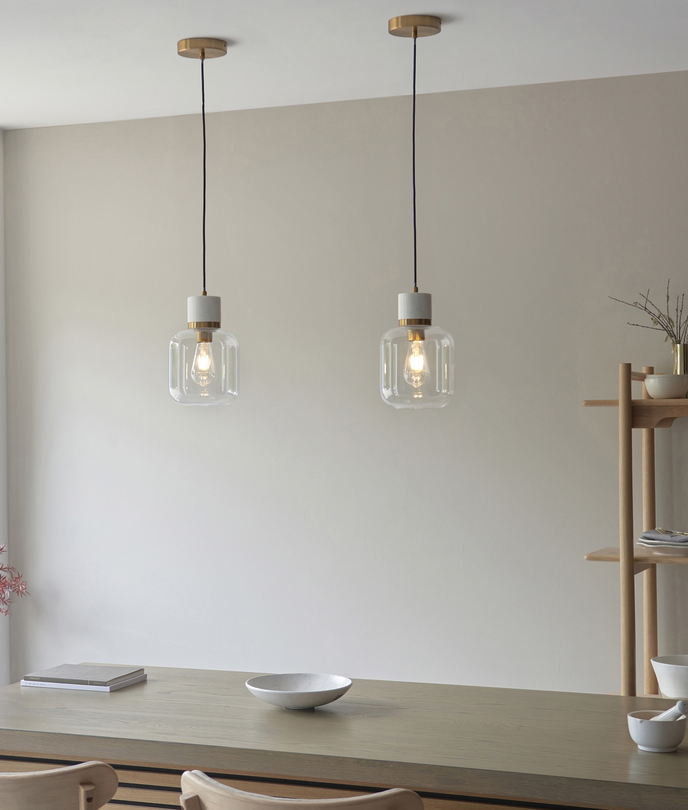It works beautifully as a single statement piece or when installed in multiples, for example, above a breakfast island or dining area. The clear glass shade provides direct, focused illumination with subtle diffusion, allowing the light to spread naturally through the room.