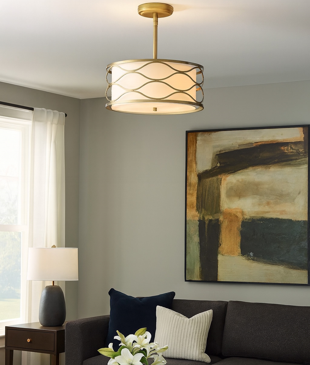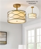 Aged Gold & Cream Drum Shade Pendant - Convertible to Semi-Flush