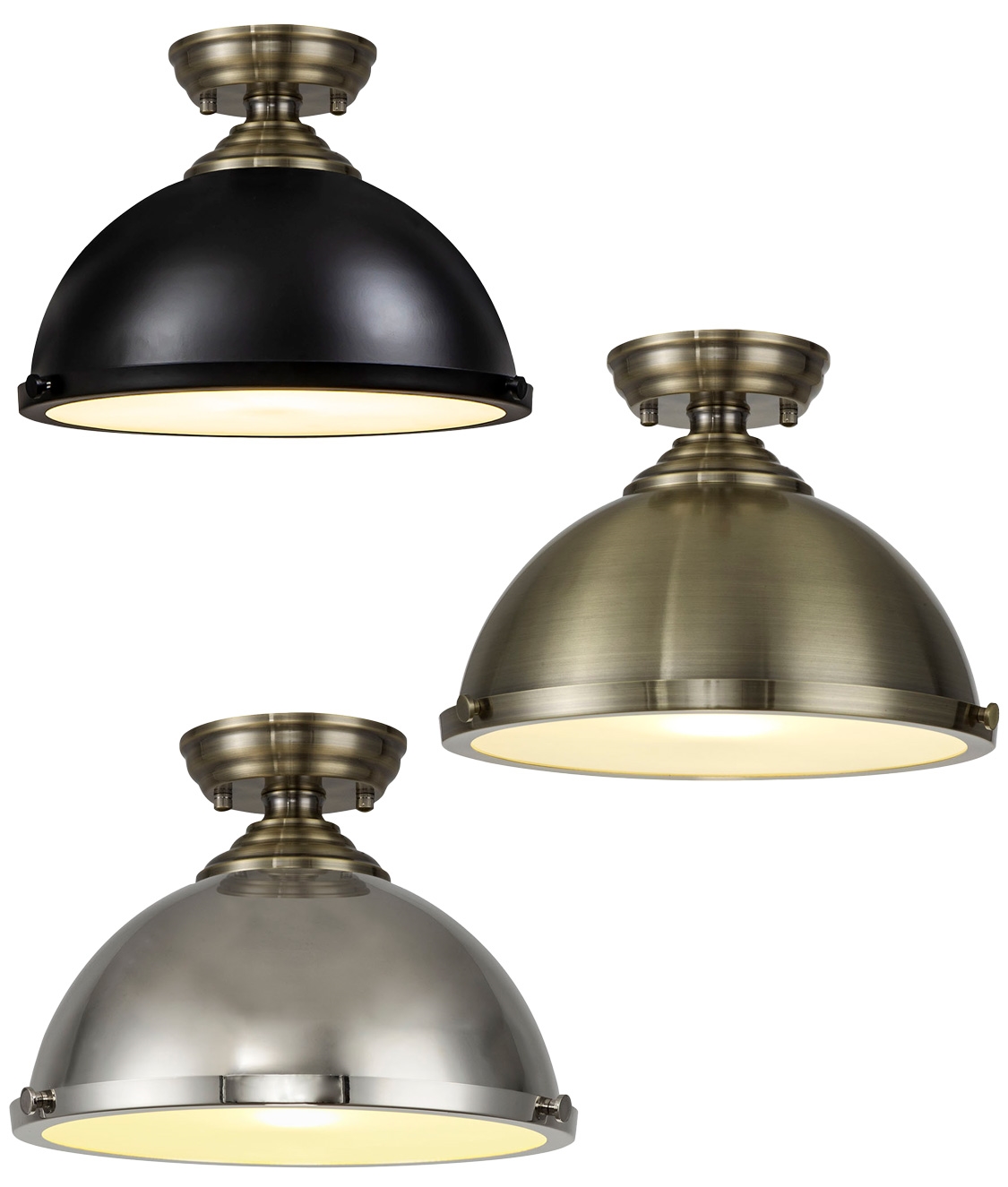 £125.00 inc VATThis semi-flush ceiling light features a 310mm metal dome with a clean, industrial profile that works well over kitchen tables and breakfast areas.