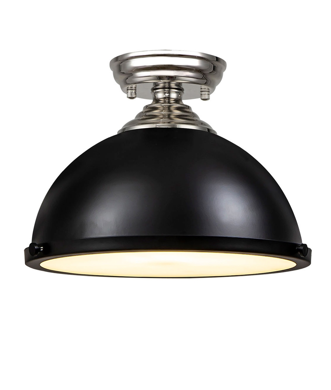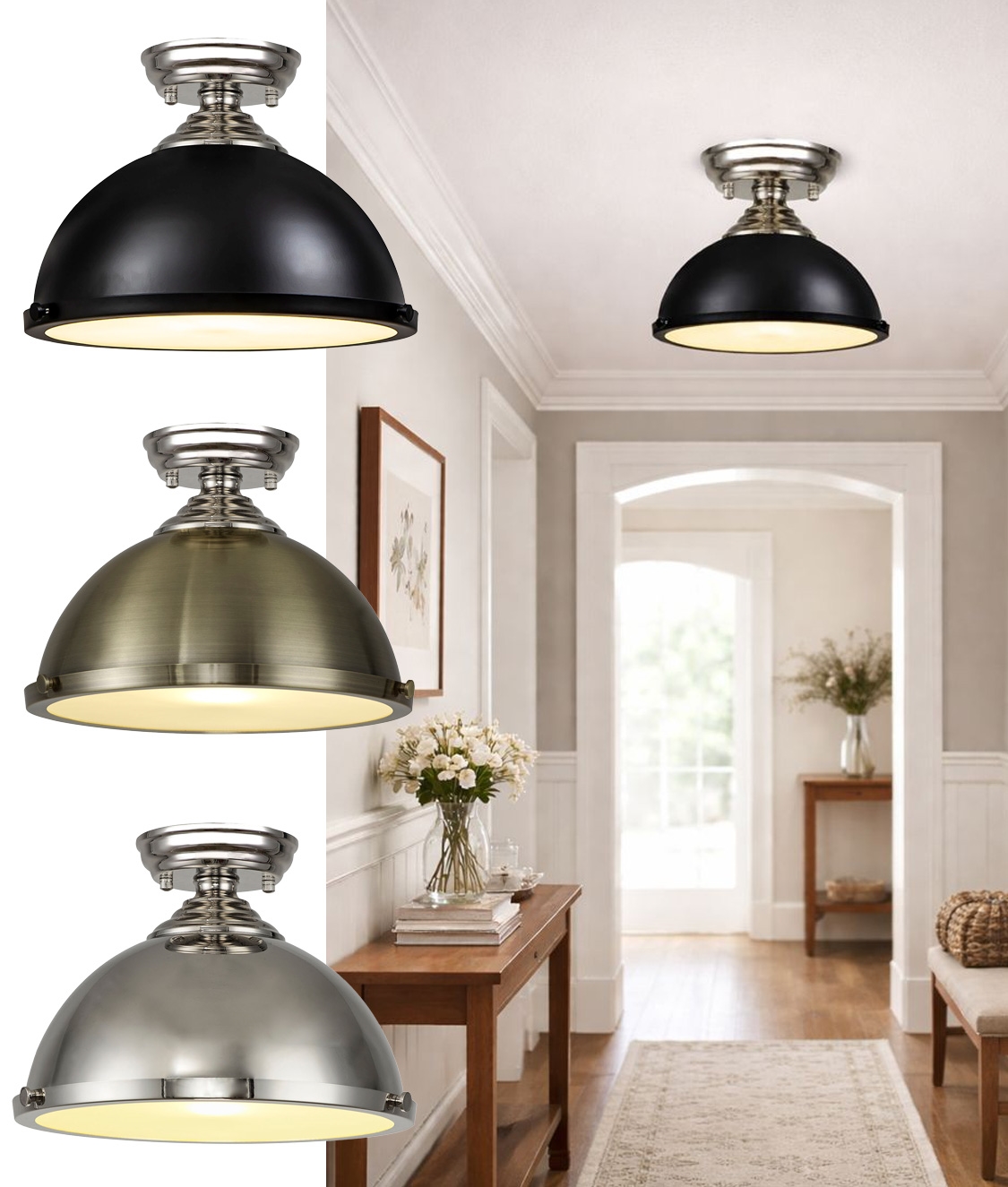 £125.00 inc VATThis semi-flush ceiling light features a 310mm metal dome with a clean, industrial profile that works well over kitchen tables and breakfast areas.