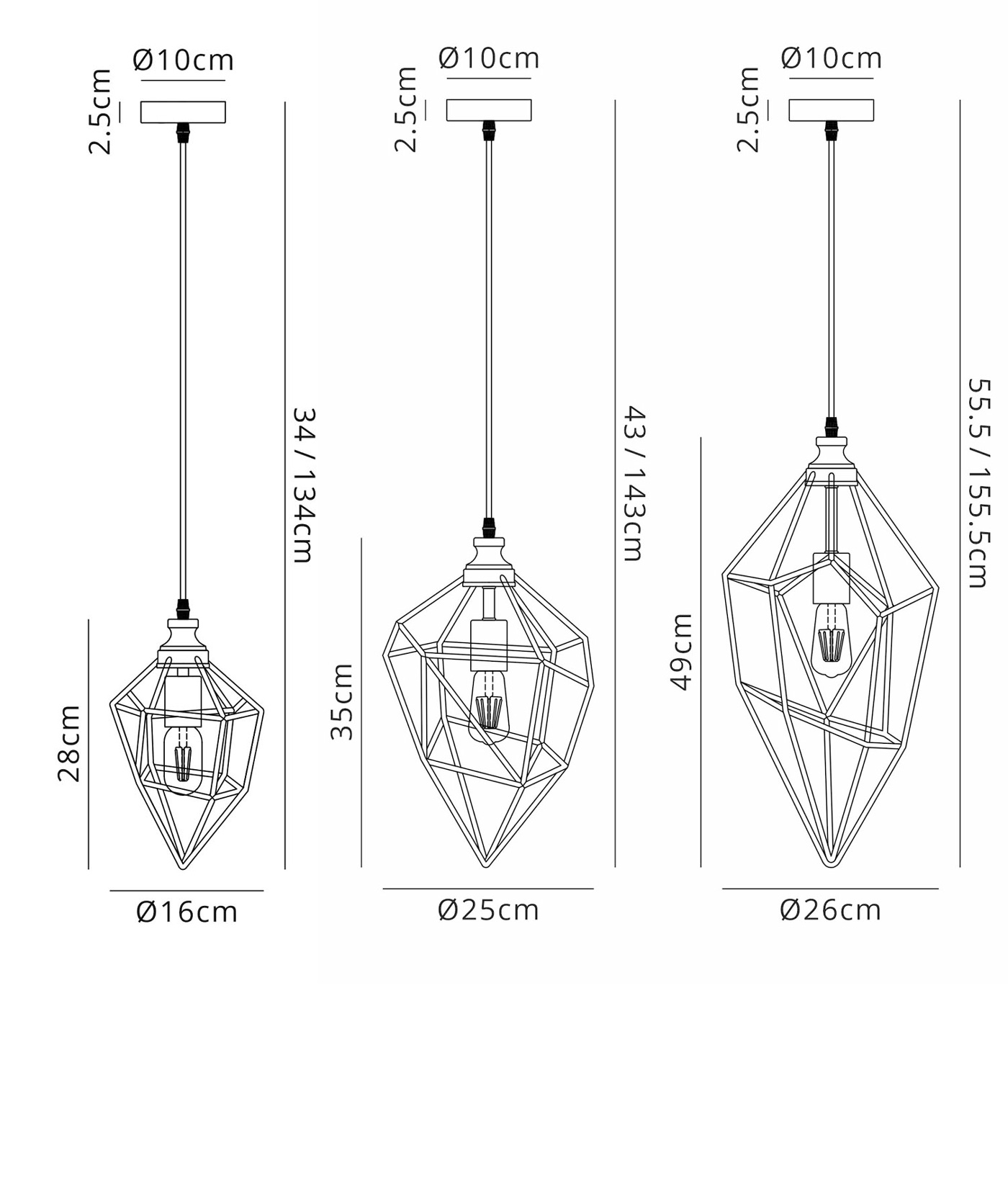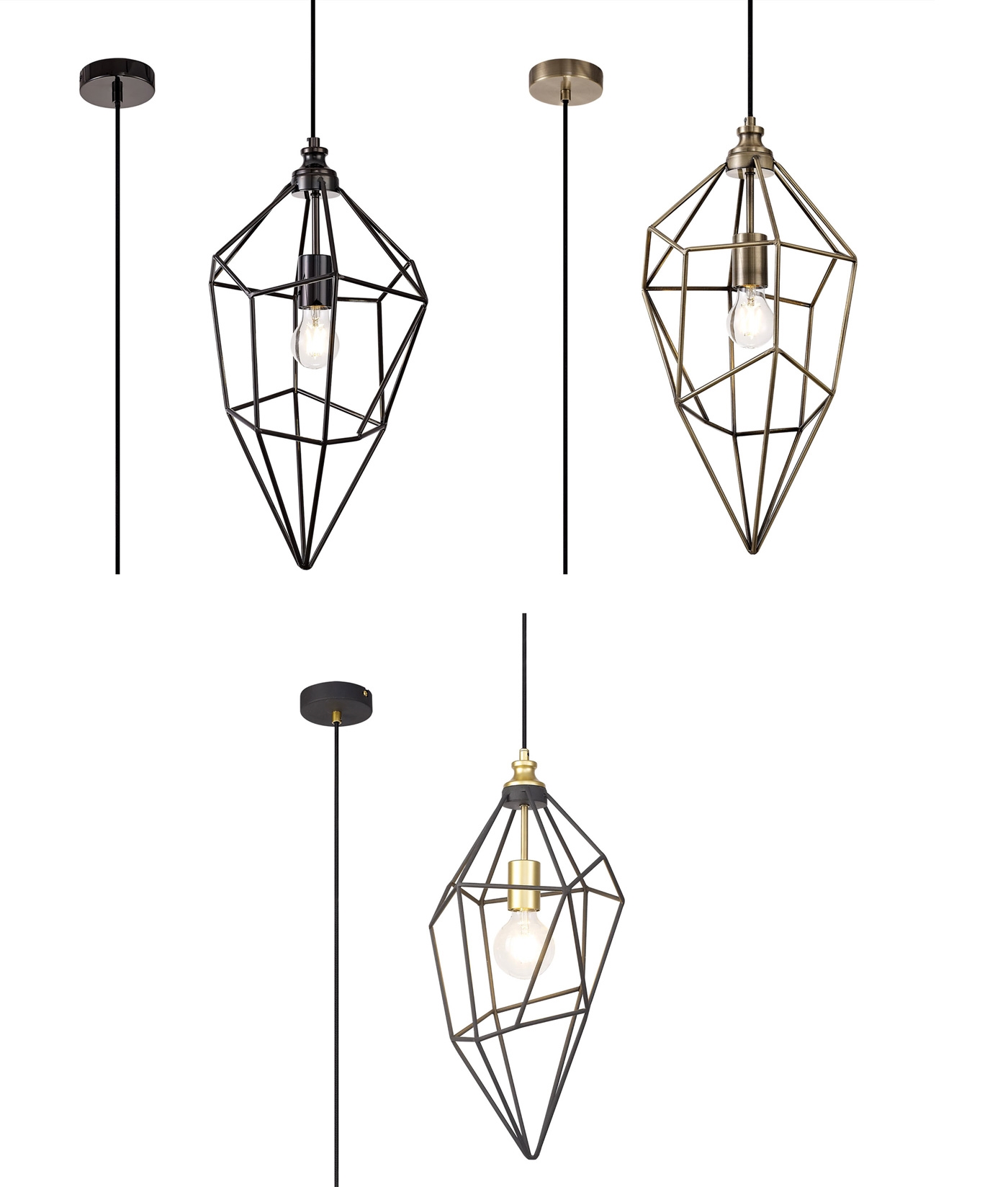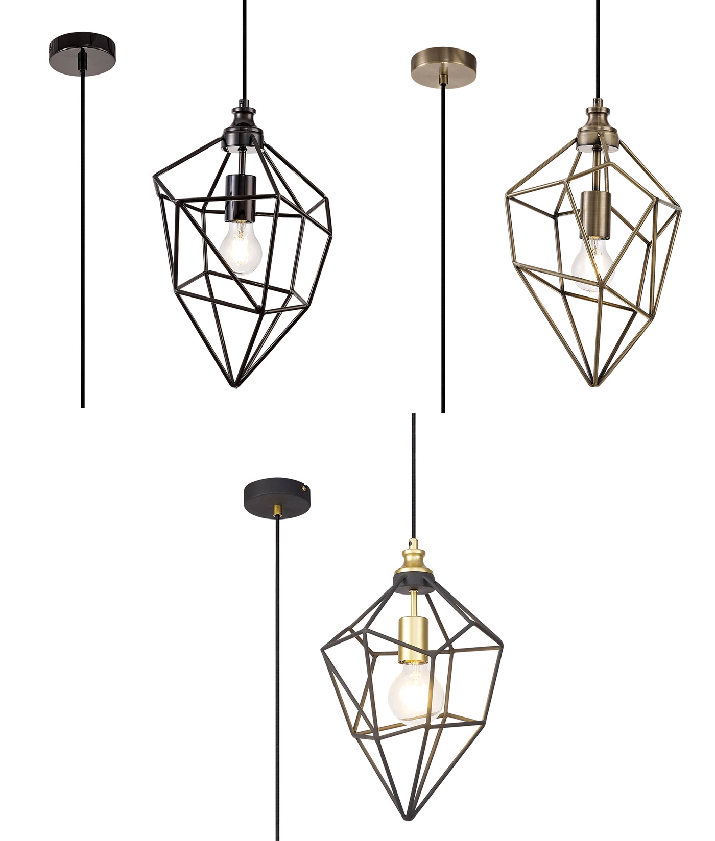 From £58.00 inc VATThese geometric pendants offer a modern take on classic metalwork, giving kitchens, dining areas and hallways a clean, structured look. The open frame allows the light to pass through without obstruction, producing a direct downward beam for practical tasks while also providing diffused illumination through the wireframe structure for a softer overall effect.
