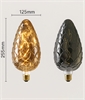 An E27 base, pinecone-shaped bulb crafted from tinted glass that gives a smoky titanium appearance when unlit. The sculpted surface captures and reflects light, allowing every scale of the glass to glow when illuminated. The mirrored titanium coating softens to a warm amber tone once lit, producing a decorative effect that feels both modern and atmospheric.