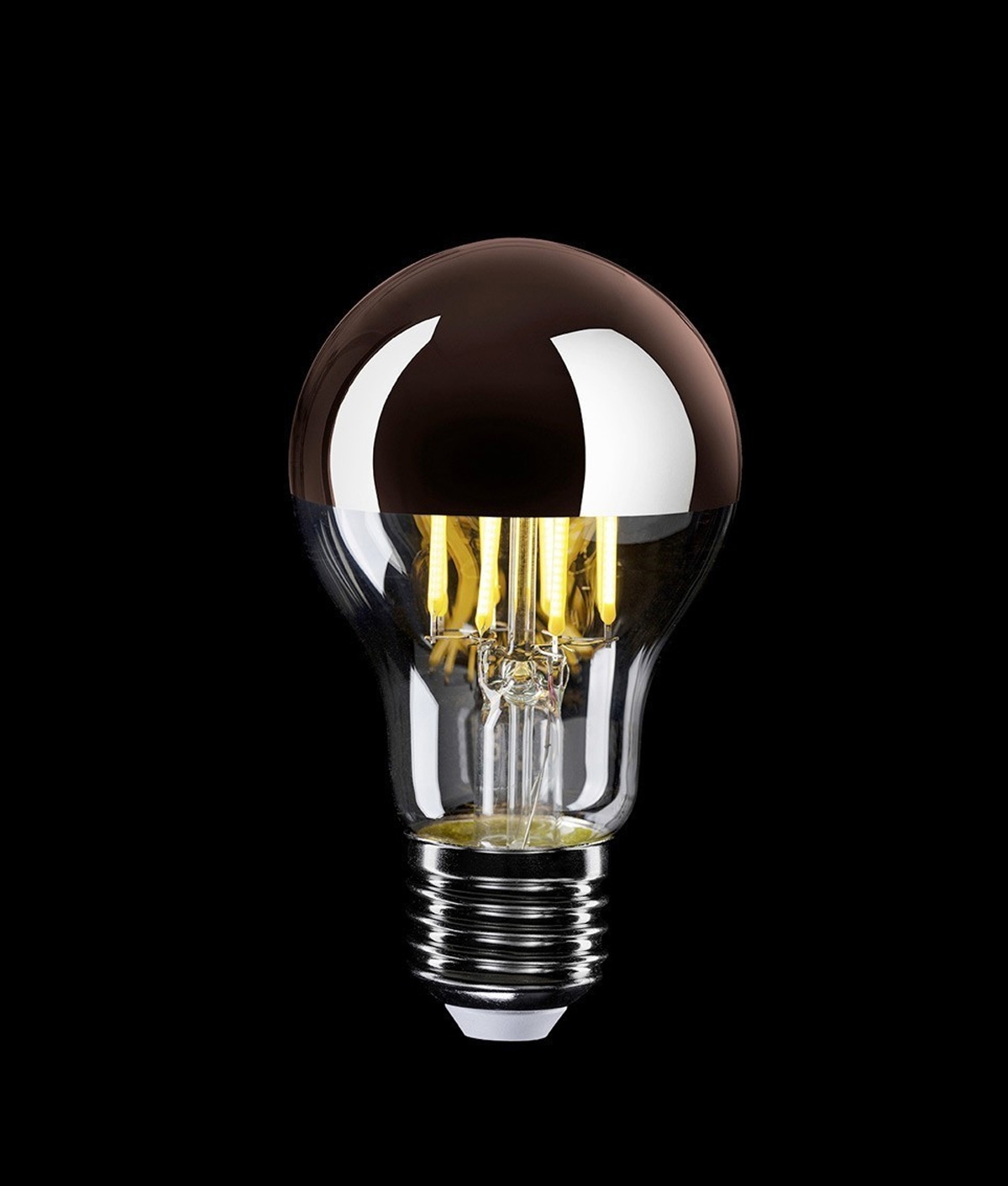 £12.00 inc VATThis is a 7 watt E27 base LED lamp with a half-sphere copper cover. The metallic crown makes this perfect for low glare lighting with an interesting halo effect. Designed to push the light back into the fitting these are ideal to reflect light downwards, so perfect for over dining tables for instance. Or simply use in a bare bulb fitting to creating a decorative look with a vintage feel.