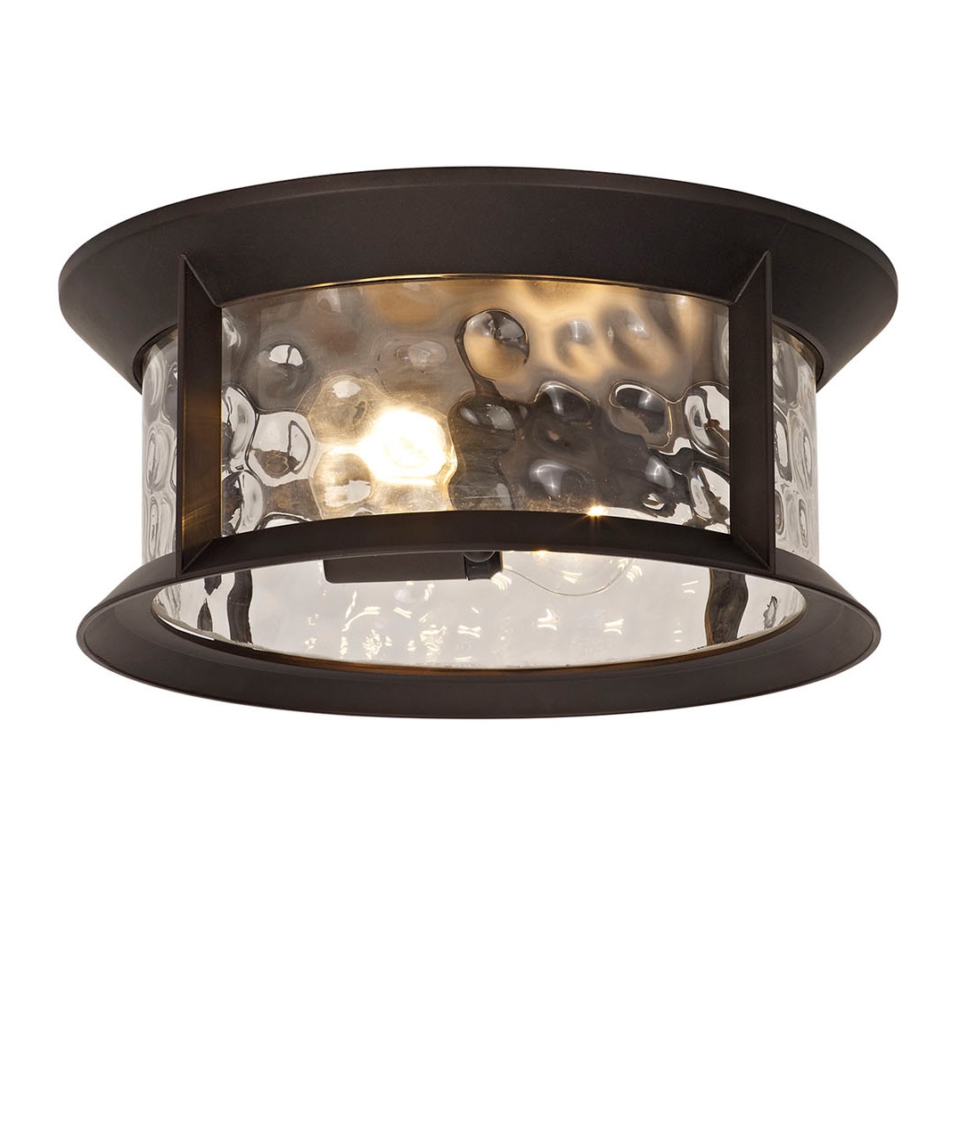 Flush Round Ceiling Light - Antique Bronze & Clear Ripple Glass - IP54