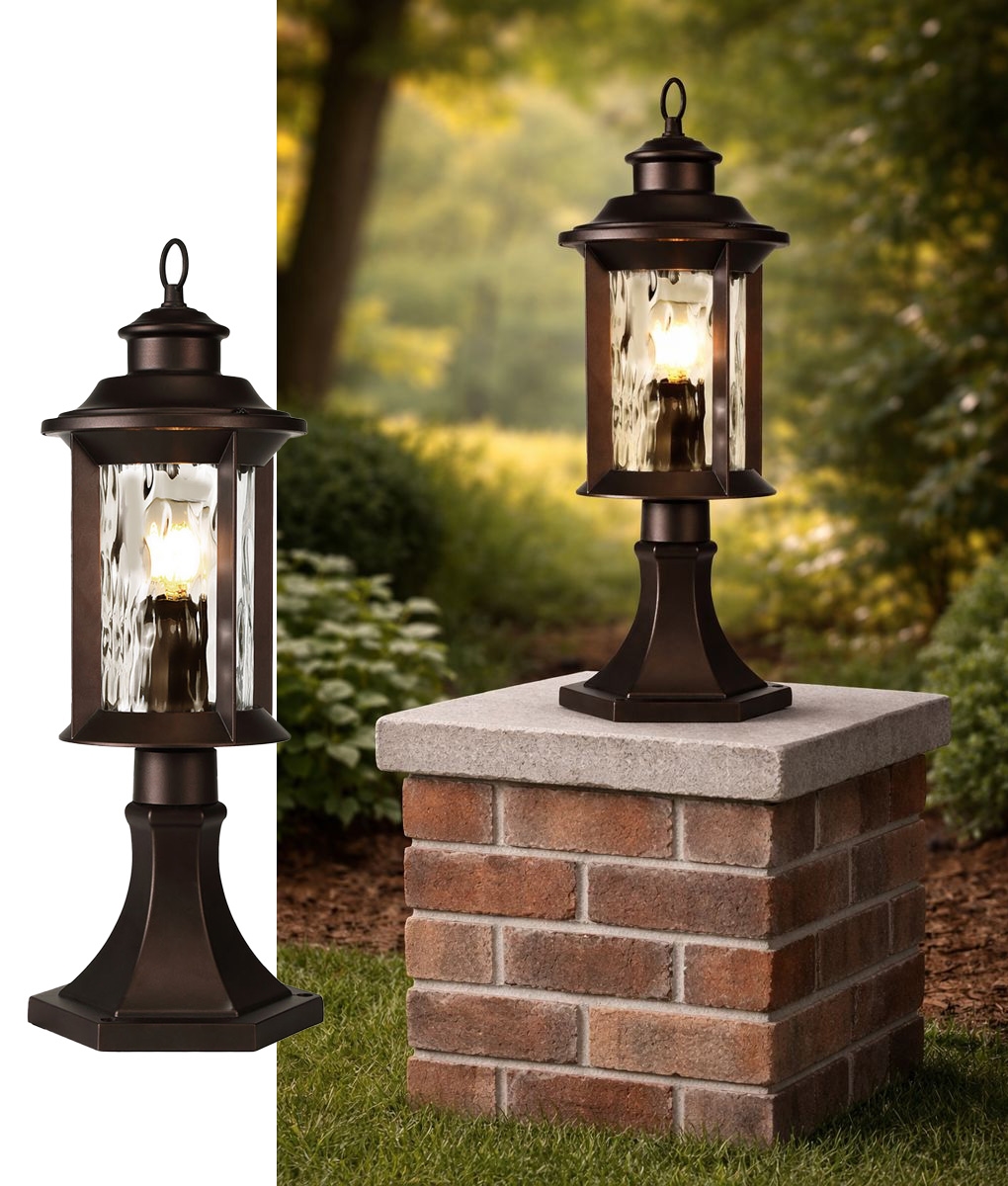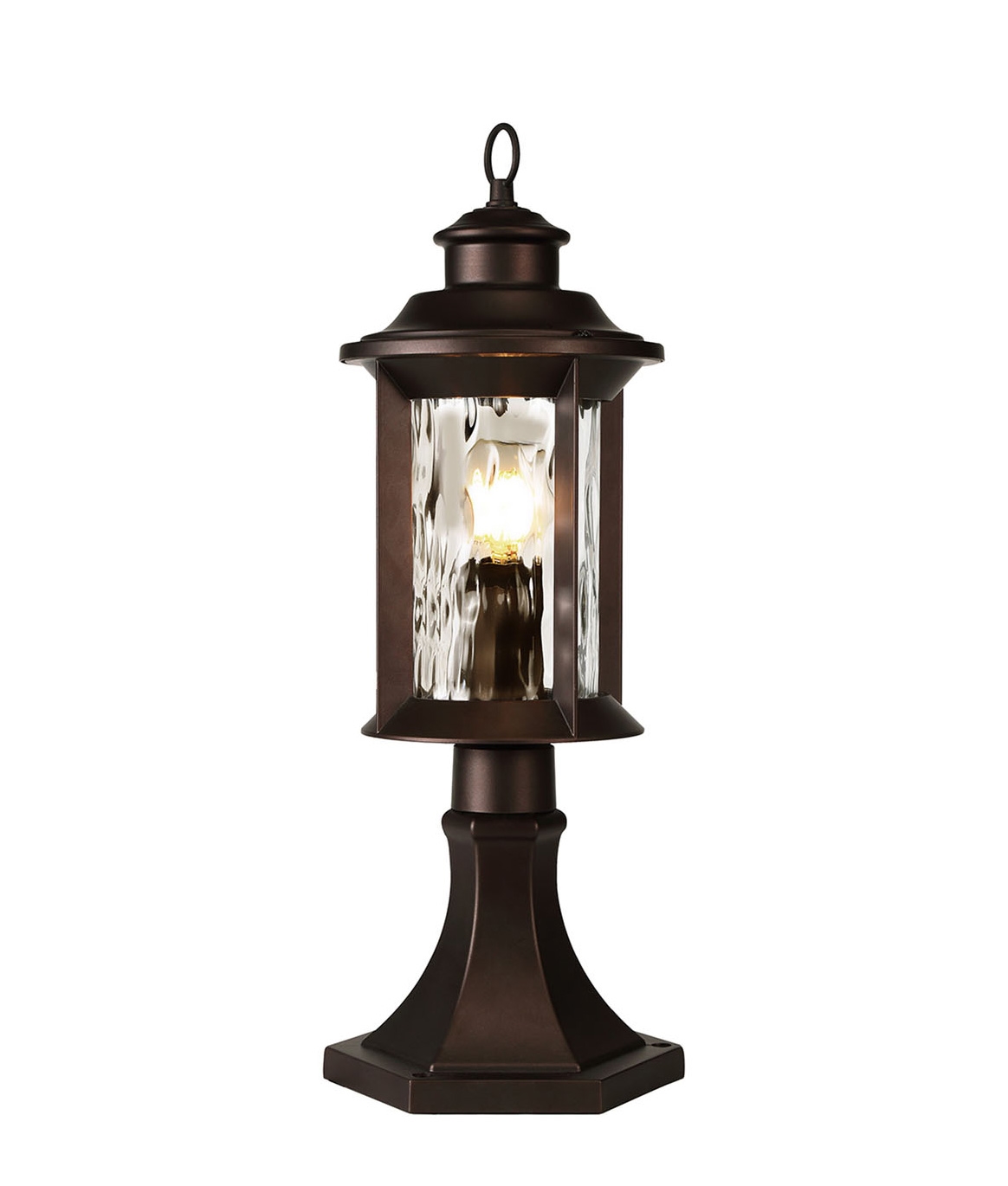 Exterior Pedestal Light - Antique Bronze & Clear Ripple Glass - IP54