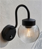 £79.95 inc VATAn exterior PIR light can often have more of a utility style rather than being attractive however not so with this option. This black textured metalwork light with ribbed glass globe is modern and will add style to an entrance or passageway.