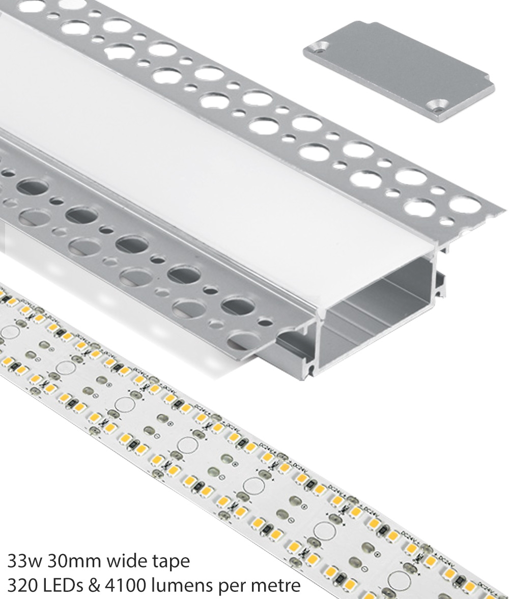 Extra-Wide Plaster-In 2m Aluminium LED Profile for Precision Lines of Light