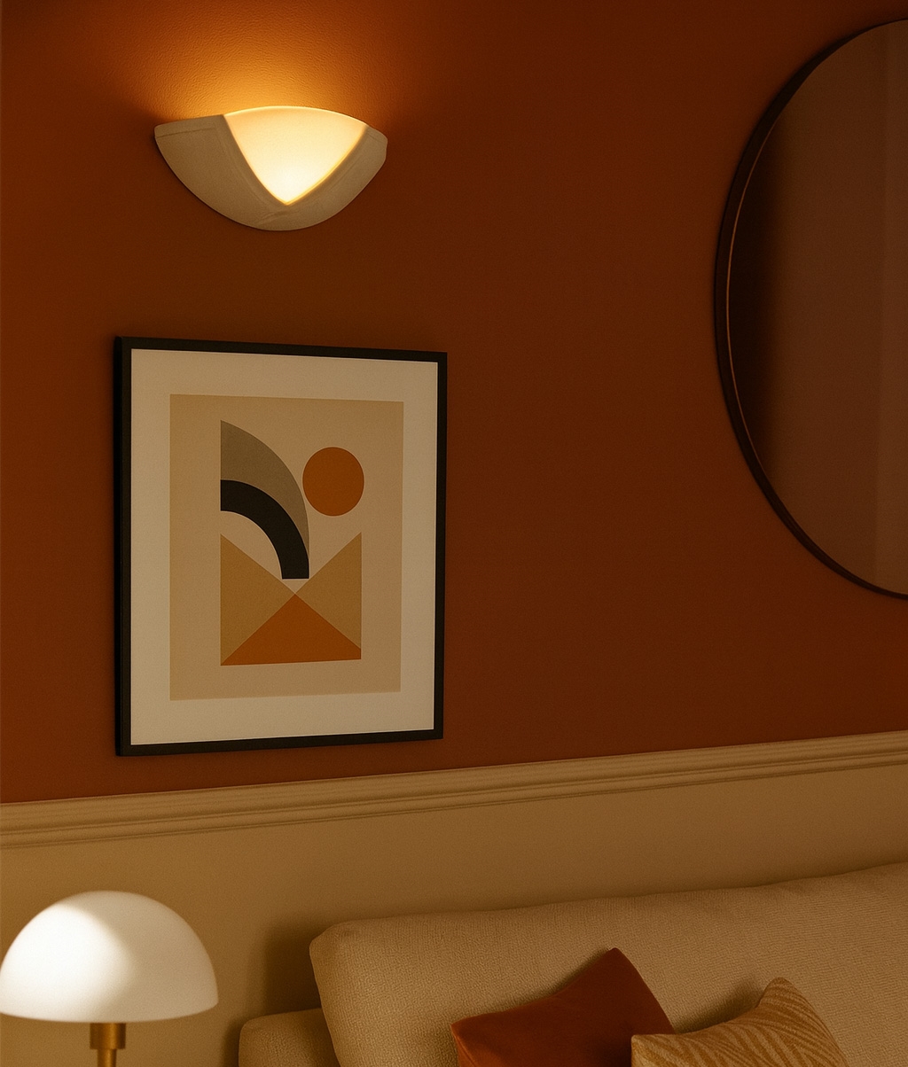 £74.00 inc VATThis ceramic wall light combines decorative design with practical performance, casting light upwards while gently diffusing illumination through the front glazed panel. The unglazed ceramic finish can be painted to complement your interior scheme, though its natural surface offers a timeless and refined appearance on its own.
