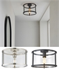 Drum-Shaped Glass Flush-Fitted Ceiling Light - Bright Nickel or Matt Black Metalwork