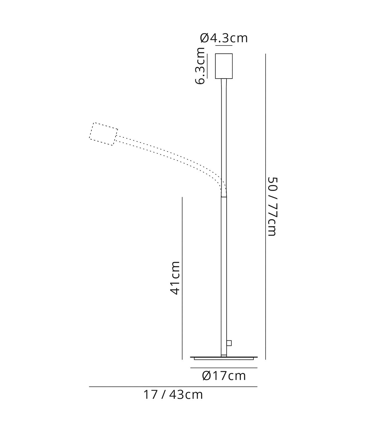 This ingeniously designed table lamp holds an E27 lamp at the end of the flexible arm. See the final image for dimensions.