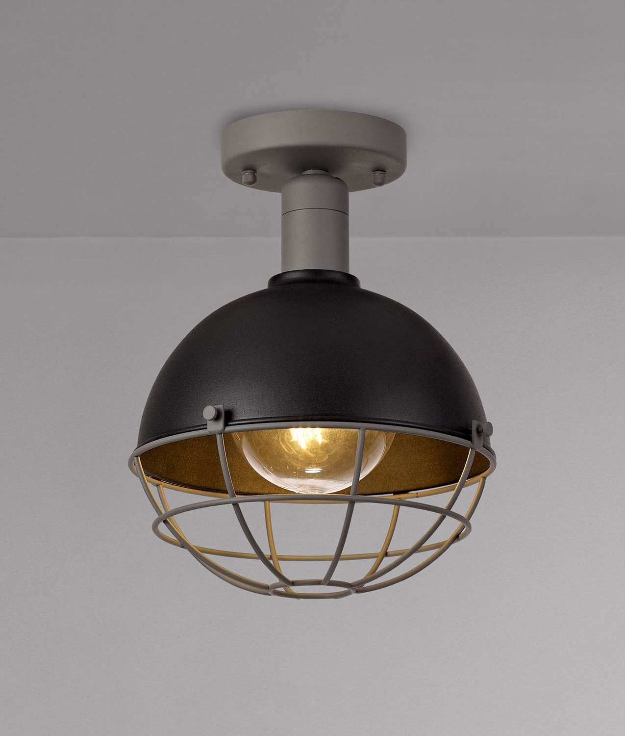 Light output is primarily direct, casting clear downward light with a subtle diffused spill through the cage to prevent harsh contrast. Ideal for providing reliable functional lighting with a distinctive, modern edge.