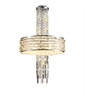 £589.00 inc VATAn exquisite crystal fixture combining a variety of different high quality crystal components to amplify its distinctive presence. This ultra-modern creation begins with a waterfall of square crystal pieces stopping at the wider, originally formed frame with curved rows of long slim rectangular crystals inserted into minimalistic polished chrome metalwork. This section conceals the E14 lamp holders which can take a maximum of 40W. The cascading crystals resume beneath the frosted diffuser transforming from square pieces into more substantial rectangular crystals. Gibson's intricate facets make a fascinating crystal pendant which can be converted into a Semi Flush light if required.