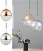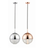 From £87.00 inc VATA fantastic glass globe pendant with copper or chrome metallic detailing. The glass globe has a metallic mirror top half with ripped glass bottom allowing more light output, filling the room beautifully.