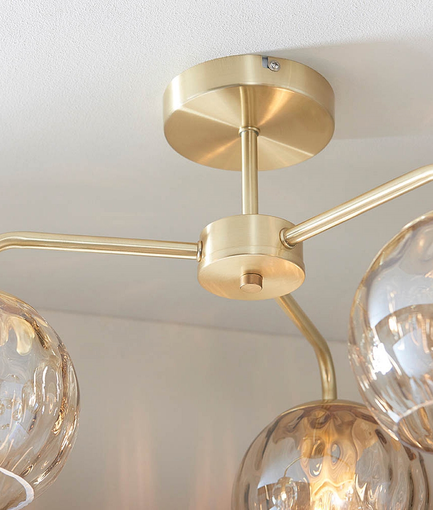Brushed Gold and Dimpled Glass Semi Flush Ceiling Light