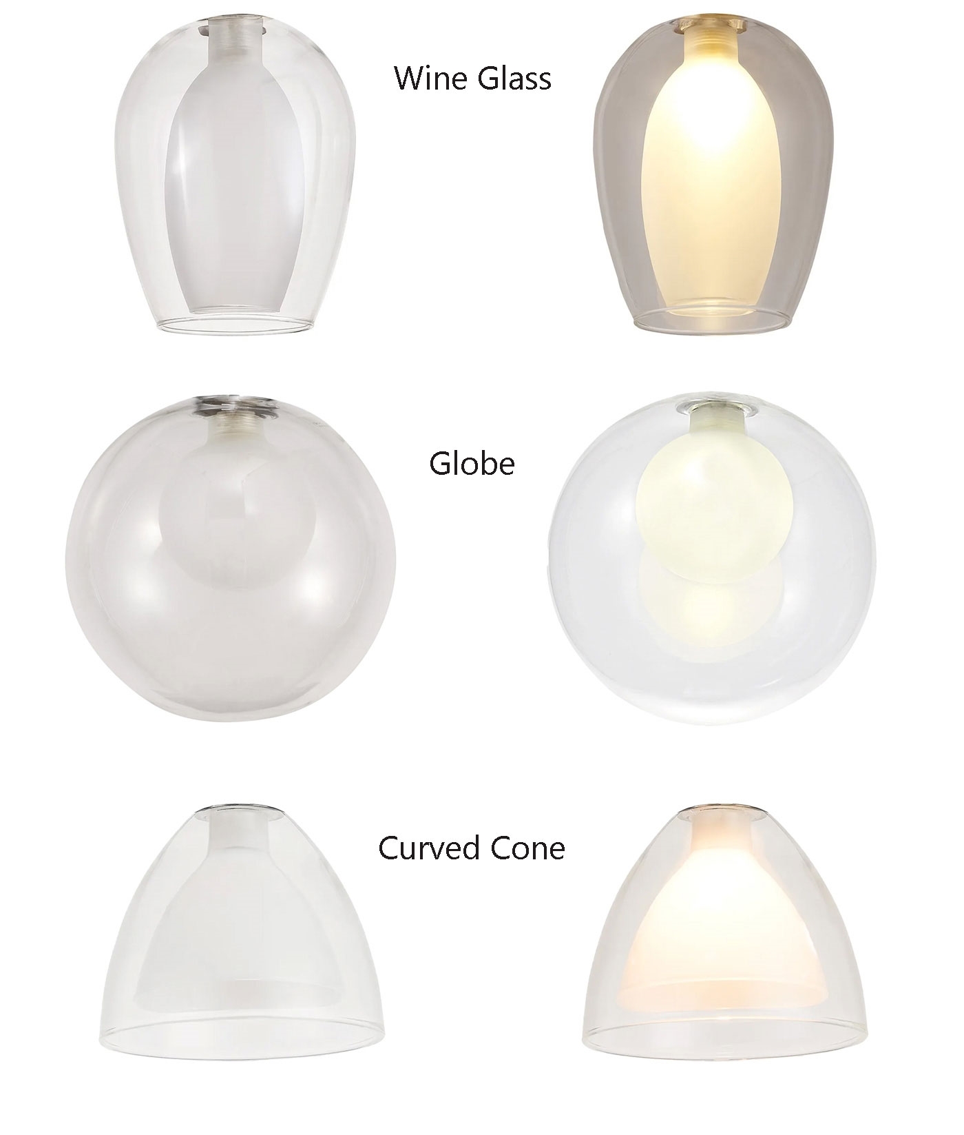 The fitting can be customised with your choice of three distinct glass shades, enabling you to personalise the look to match your décor. The adjustable flexes allow you to vary the height of each light, creating dynamic and layered compositions, whether clustered or evenly spaced.