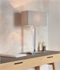 £273.00 inc VATA 660mm tall table light with a tapered chrome base complete with a grey faux silk shade. A great table lamp for console tables, living spaces, bedside use and more. Providing diffused lighting through the shade and illumination above and below. A modern design and great teamed with the matching wall light.