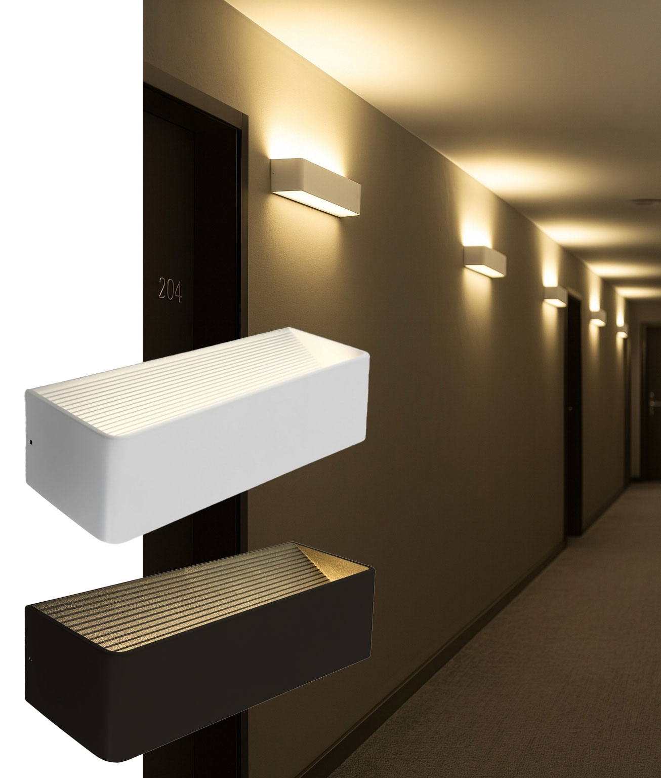 Crafted from durable aluminium, the wall lights are designed for long-lasting performance and to retain their appearance even in high-traffic areas. Available in classic white finish, these fixtures blend effortlessly into any contemporary commercial space.