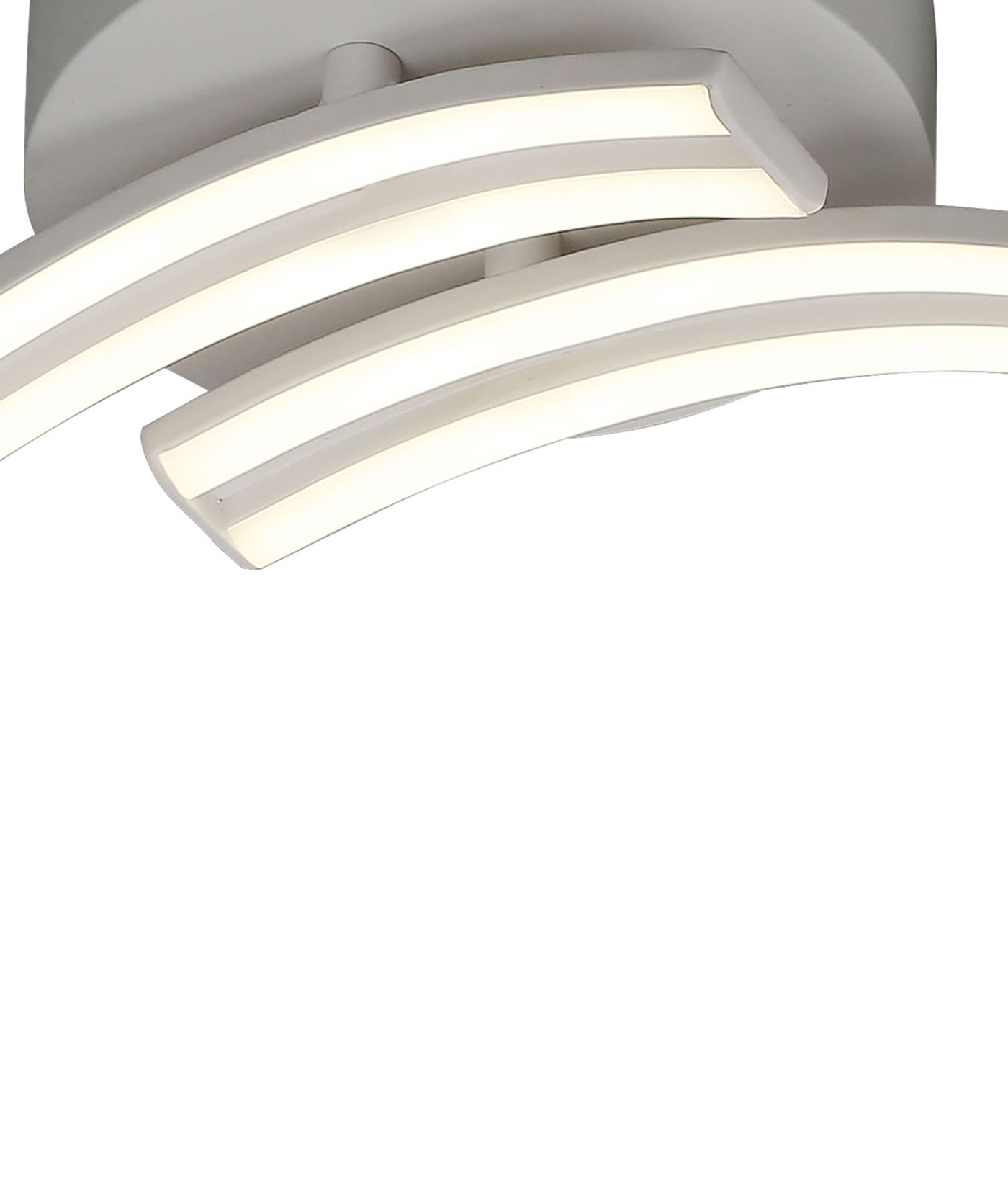 From £108.00 inc VATA striking and contemporary collection, these ceiling/wall fixtures feature slender, fluid strips of beautifully diffused light. Each piece is defined by a crisp white line running through the centre, enhancing the sculptural, wave-like form and providing a balanced 4000K light set against the sleek white frame.
