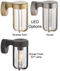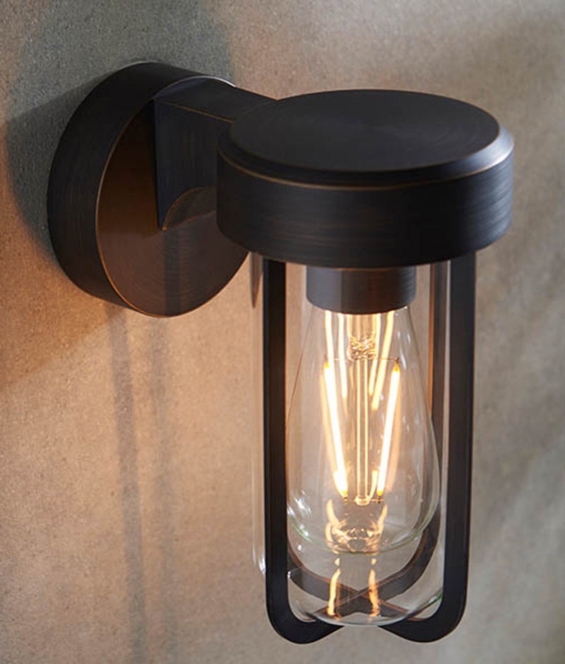 From £156.50 inc VATA caged lamp fitting with an IP44 rating making it suitable for either bathroom or exterior installation. Available in a bronze (E27 lamp), brushed gold or pewter with LED. These two options allow you to choose which either works best for you or suits your preference.