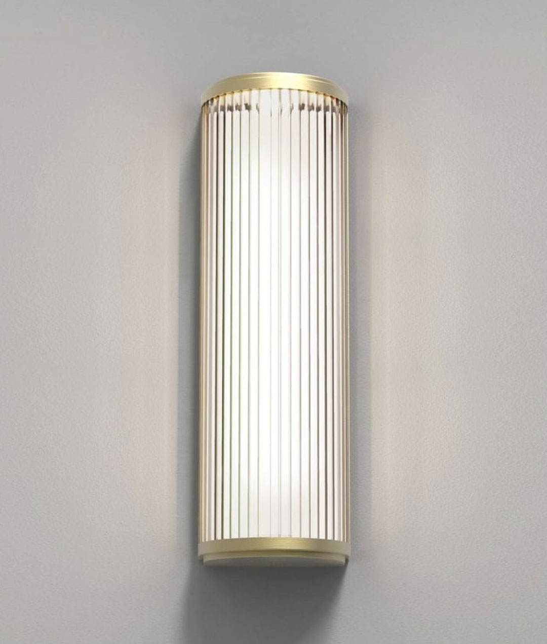 £465.00 inc VATThis is a lovely wall light measuring 400mm high which is available in gold, polished chrome or bronze. A sophisticated contemporary bathroom wall light containing an integral 7.1 watt LED for energy efficiency and a dimmer function. Reminiscent of the Art Deco period this would look stylish in many bathrooms or en-suites.