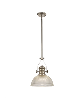 Latifi 1 Light Pendant E27 With 30cm Prismatic Glass Shade, Polished Nickel-Clear