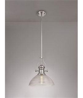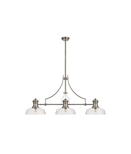 Latifi Linear Pendant With 38cm Patterned Round Shade, 3 x E27, Polished Nickel-Clear Glass Item Weight: 19.1kg