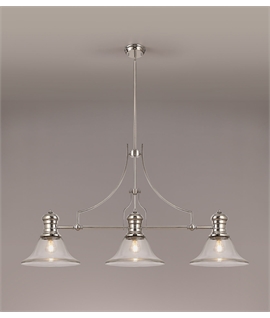 Latifi 3 Light Linear Pendant E27 With 30cm Cone Glass Shade, Polished Nickel, Clear